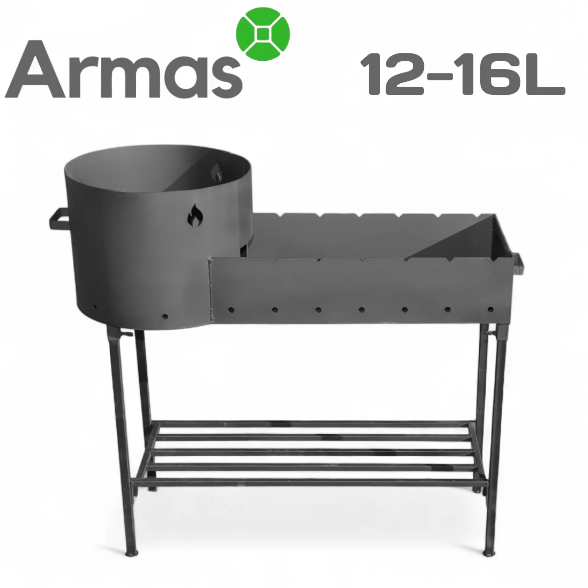 - BBQ grill with stove Ø40 cm (12–16 L): suitable for 12–16 L cauldrons, perfect for cooking pilaf, stews, soups and sauces.