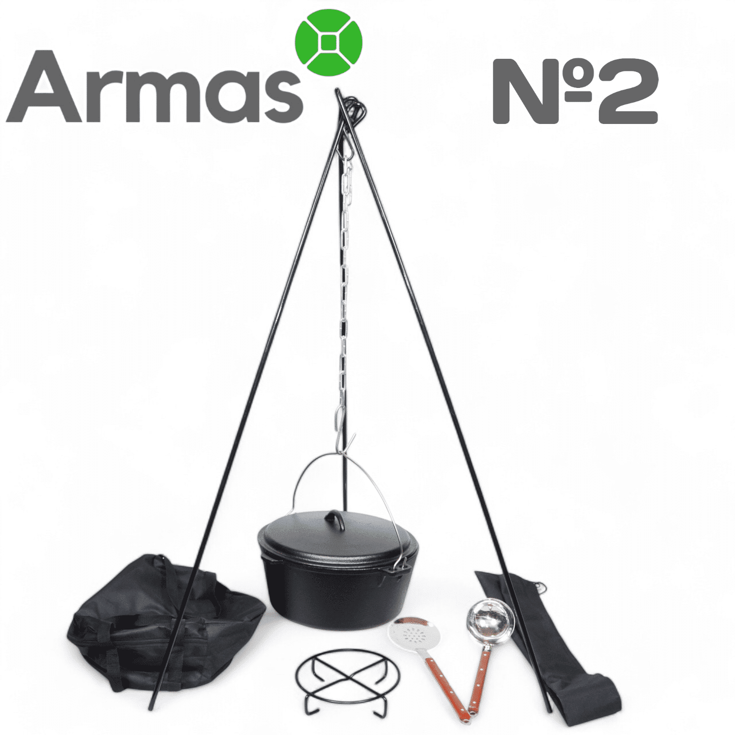 Camping set No.2 – cast iron pot with tripod stand and accessories 8.5L