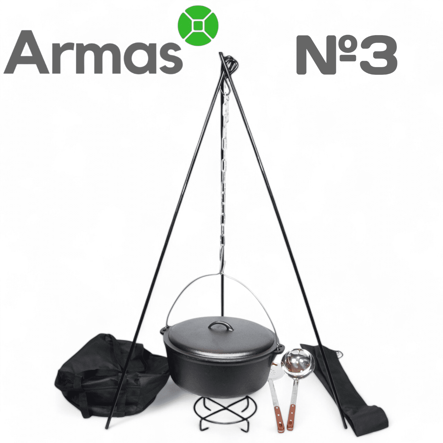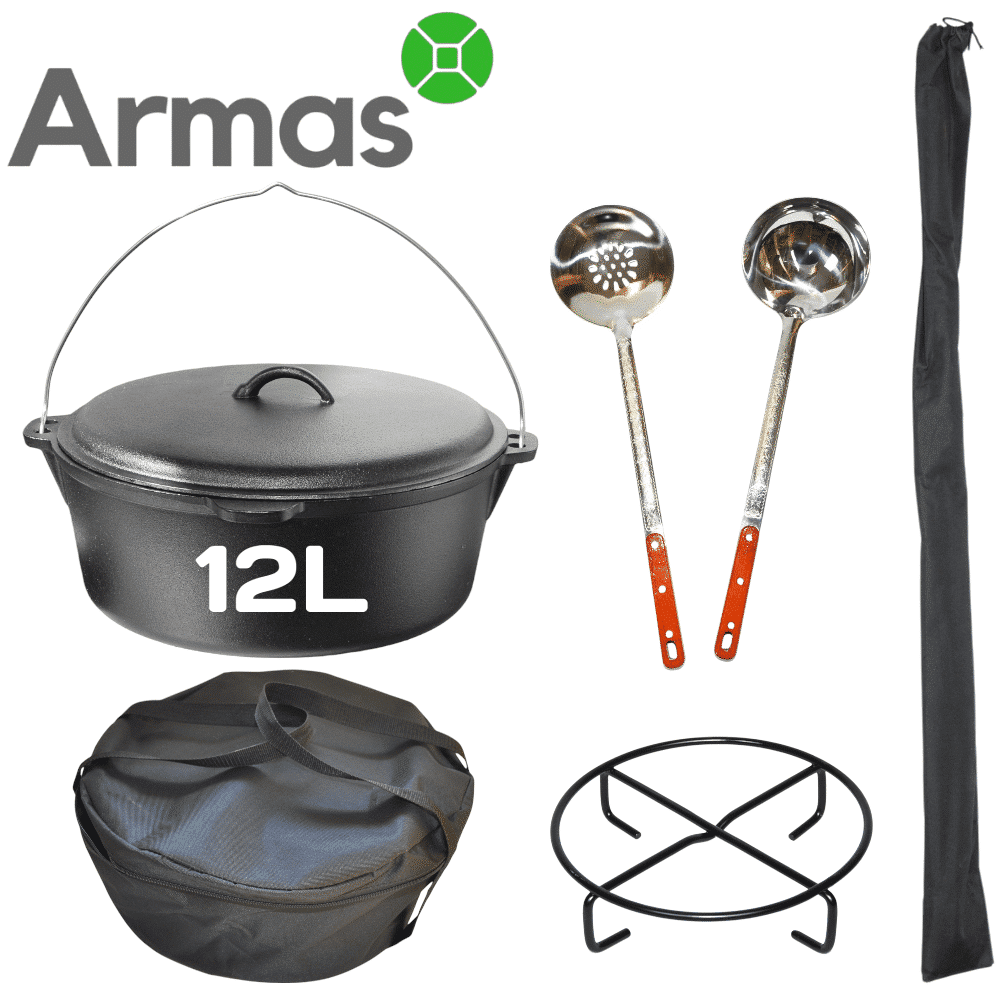 Camping set No.3 – cast iron pot with tripod stand and accessories 12L