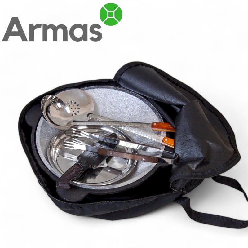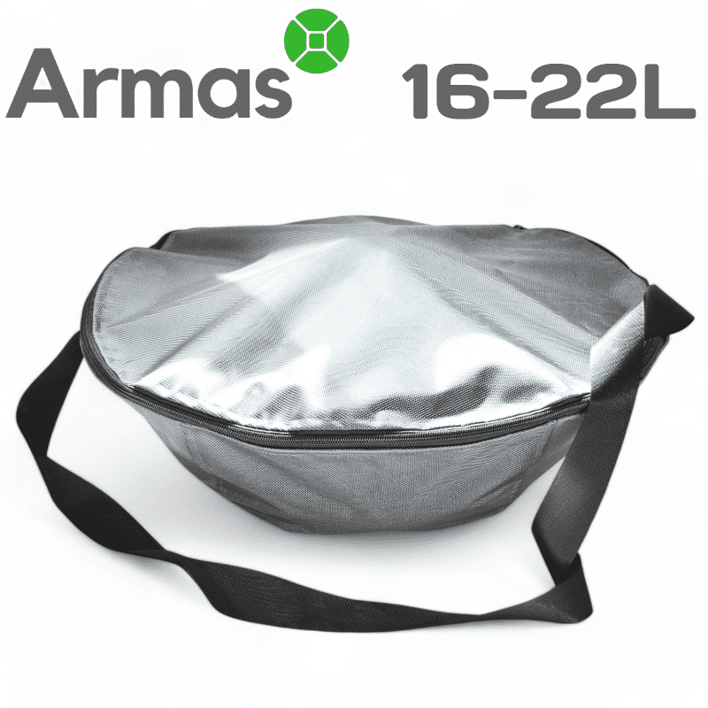 This case bag for carrying and storing an Uzbek kazan is made of durable, dust- and moisture-resistant Oxford600 material. It is ideal for use after the kazan has been used on an open fire, providing protection against soot and grease residues. Convenient for carrying and transporting in the car, as well as storing it after use. This protective cover is suitable for 16, 22L capacity. In addition, the bag can be used to store accessories such as spoons, spatulas, tripods, etc.