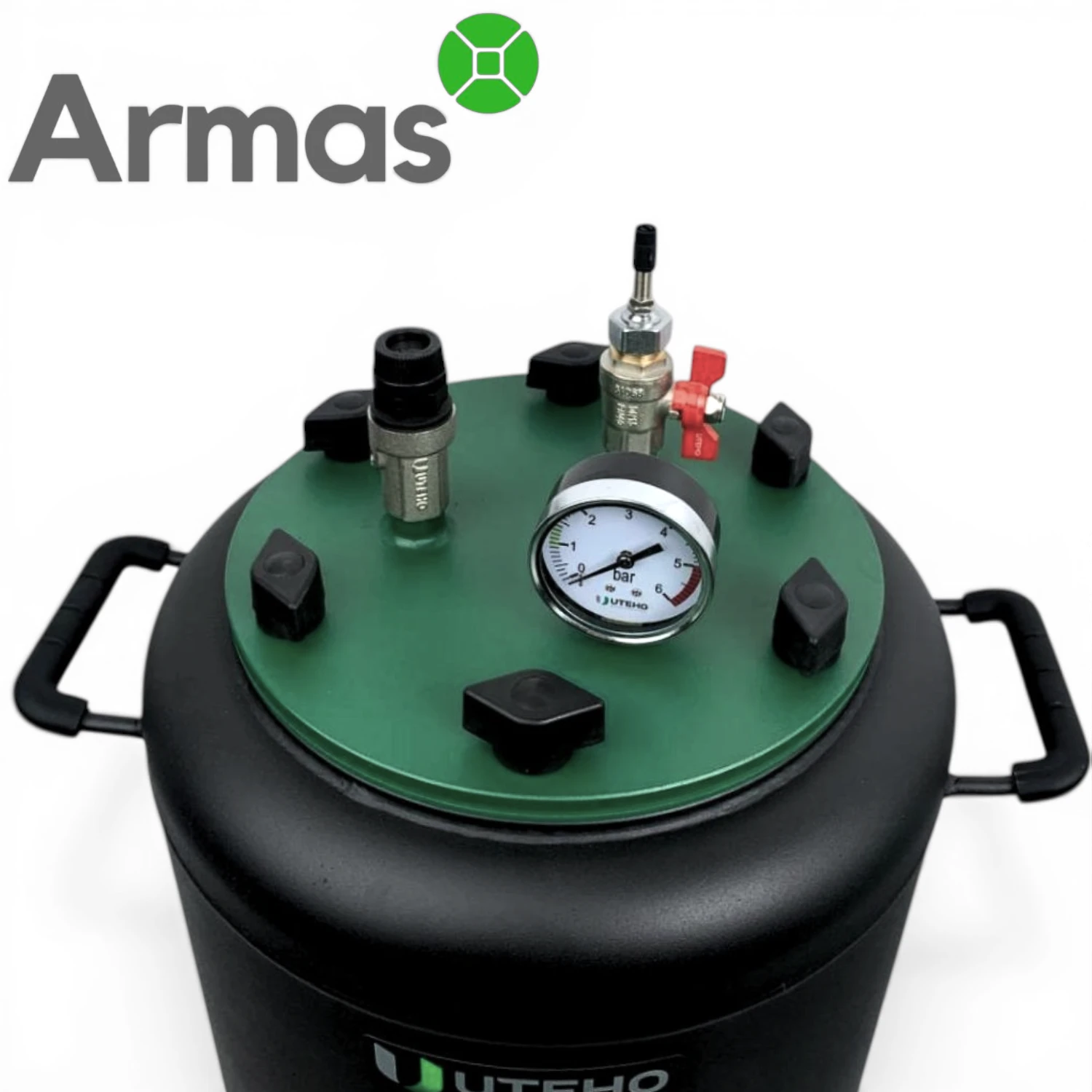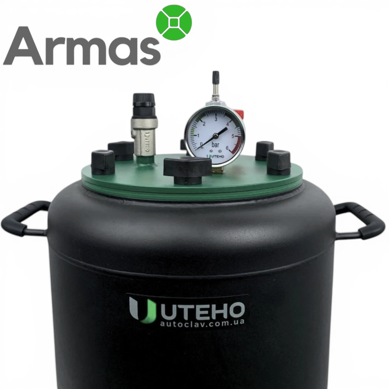 Electric universal autoclave UTEHO UTEH-16E is a universal electric water and steam autoclave for home canning with a flange-type lid. In the base configuration, this model is intended for operation in water mode, but an additional steam valve is required for steam mode.