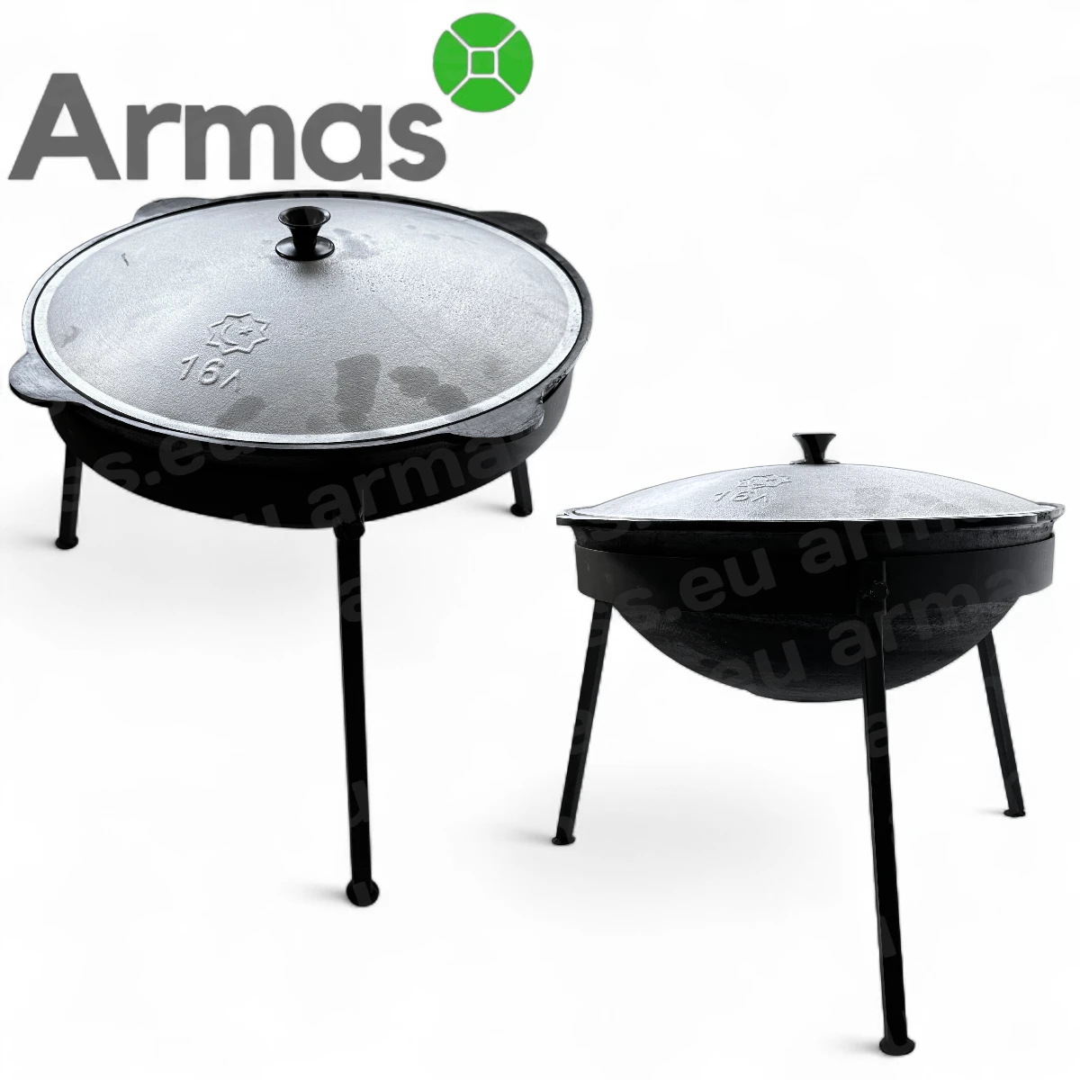 cauldrons (16–22 L), pans, pots, grills, skewers