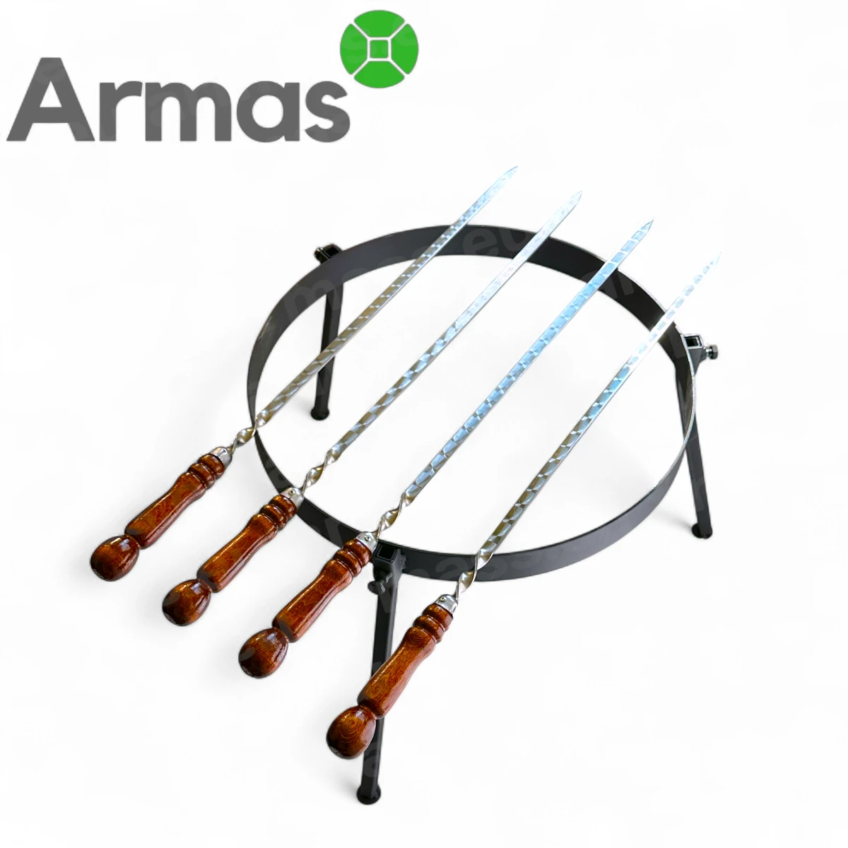 The tripod is easy to assemble and disassemble – the set includes a base ring, 3 legs, and 3 fastening screws. Thanks to its compact size, it is convenient to take with you on hikes, hunting trips, fishing, or simply when cooking outdoors in the garden.