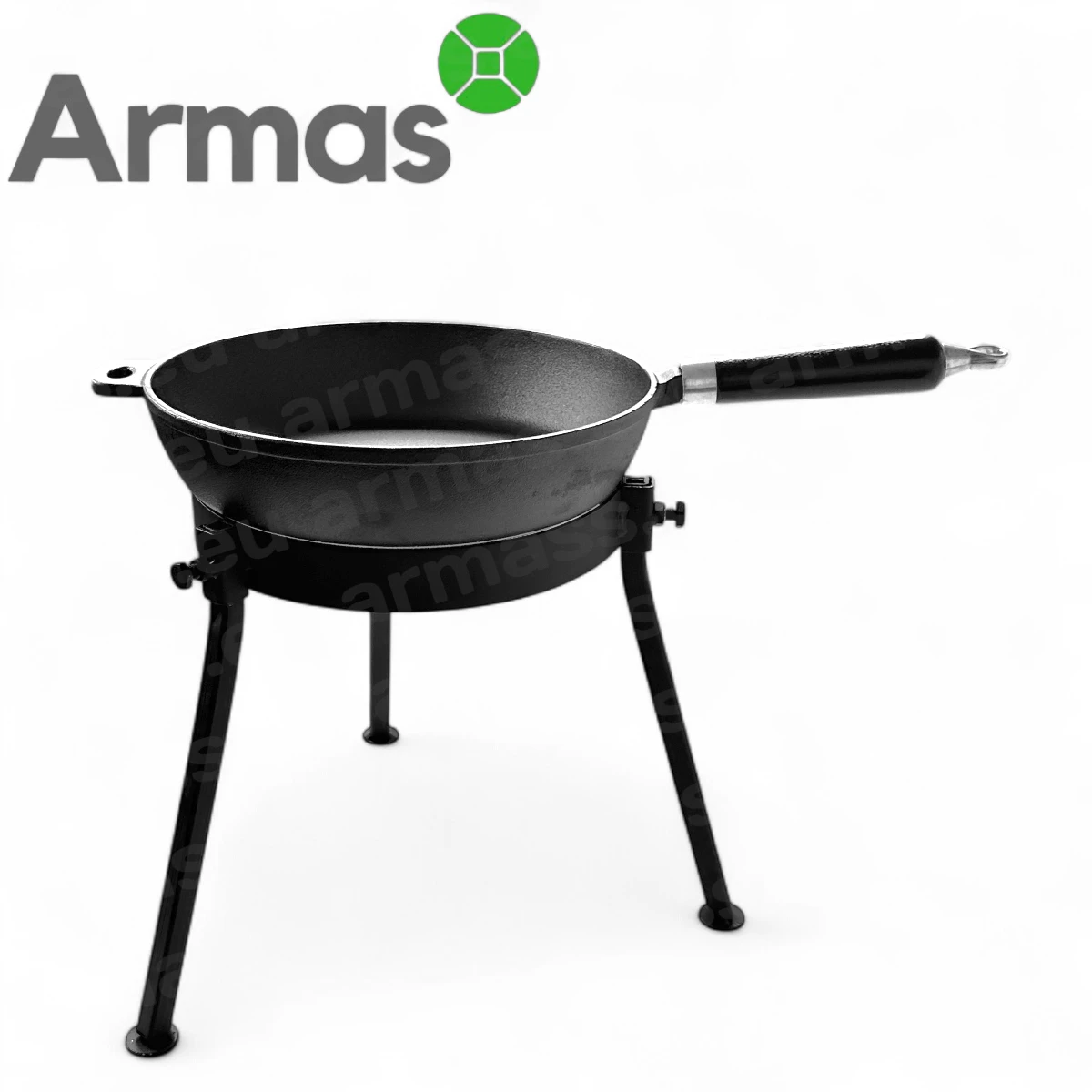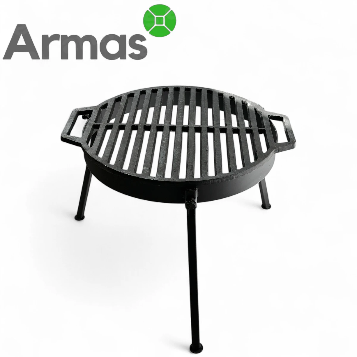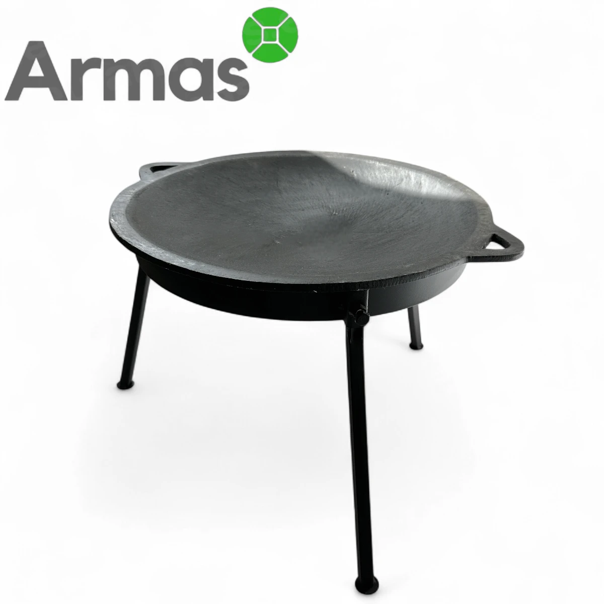Made of 3 mm thick steel with a black coating that protects against corrosion. A stable ring with three legs provides reliable support for cast iron pots, pans, grills, and even skewers. Suitable for cauldrons with a capacity of 16 to 22 liters (please check the diameter of your cookware before use).