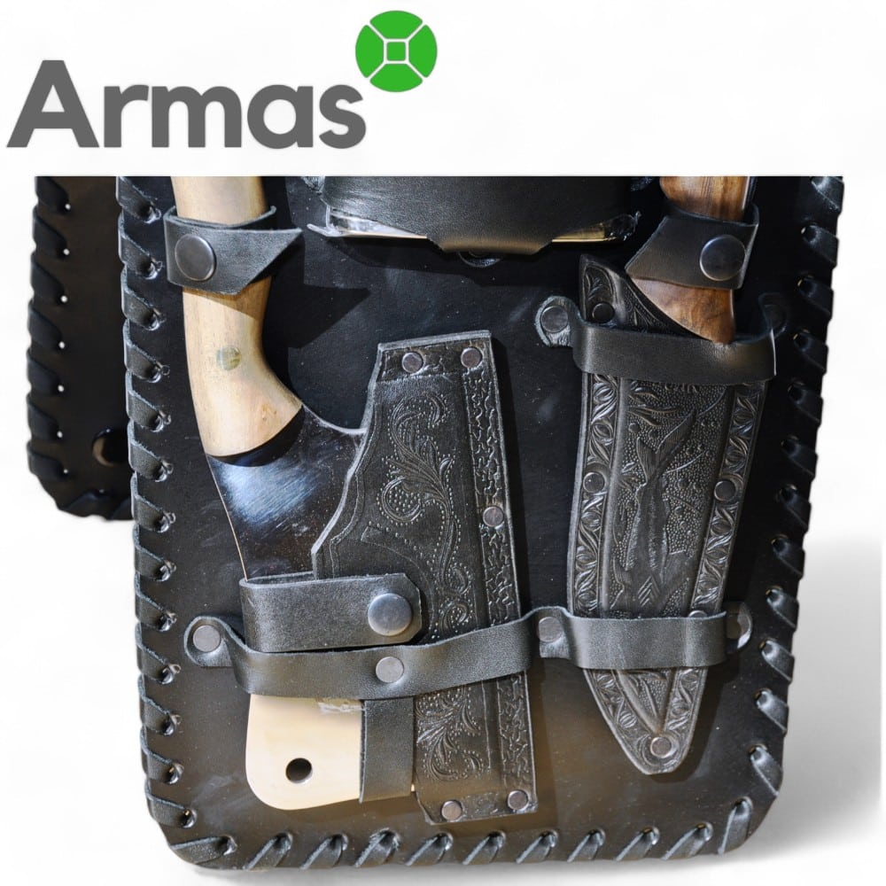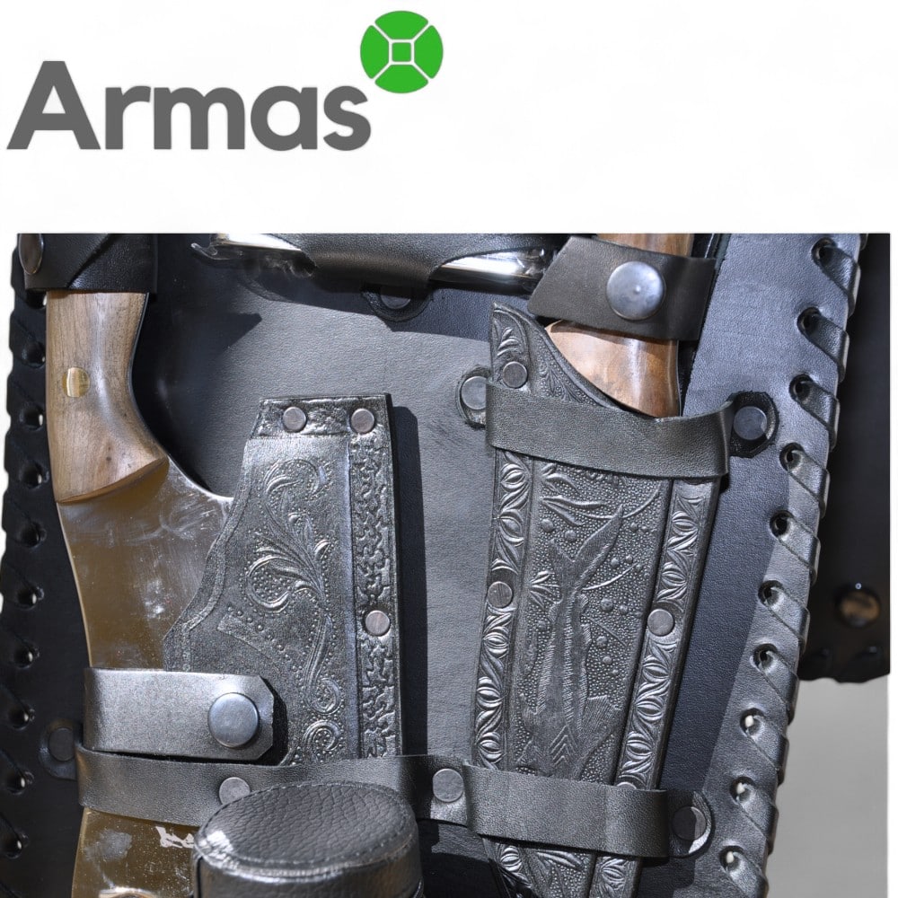 • Axe with leather cover L130/130mm (walnut handle, steel 65×13/59HRC);