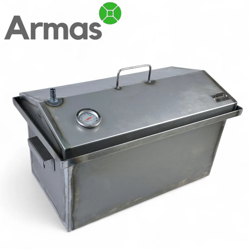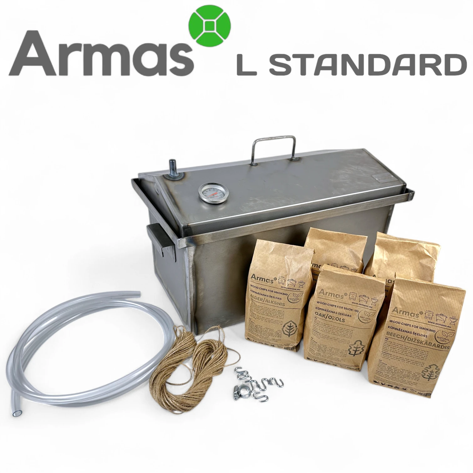 The L STANDARD Hot Smoking Box is the ideal solution for home hot smoking of various foods, including meat, fish, cheese, and vegetables. The smoker is equipped with a hydraulic lid lock, two racks, a drip tray, and a built-in thermometer. With its medium-sized design, it is suitable for use both at home and outdoors.