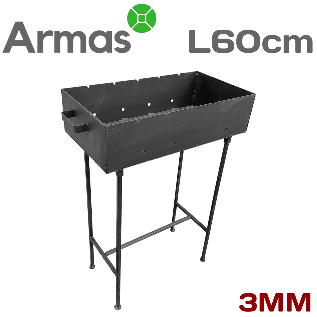 BBQ charcoal grill 80x35x14 cm, 3 mm steel, with shelf