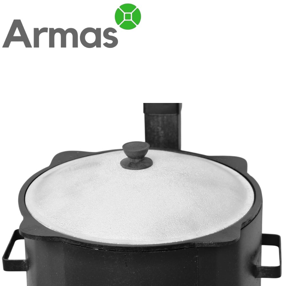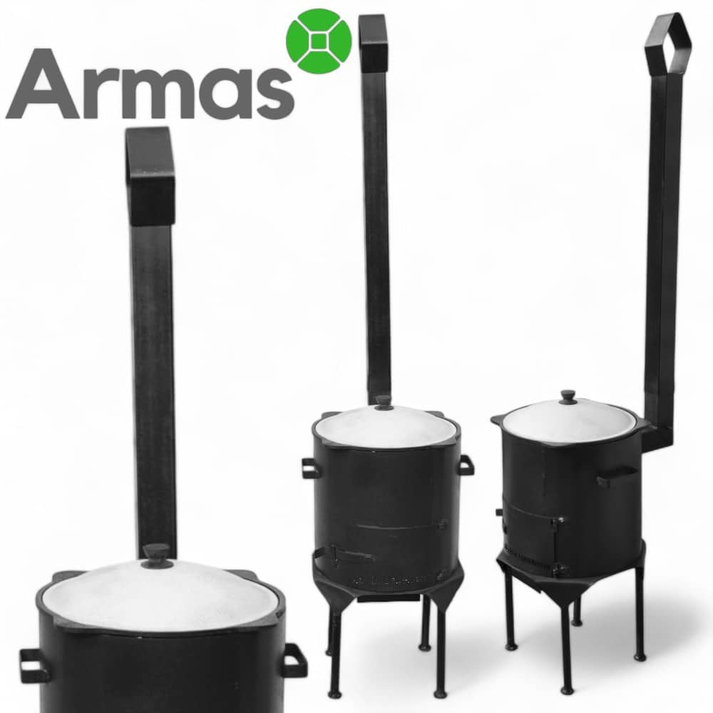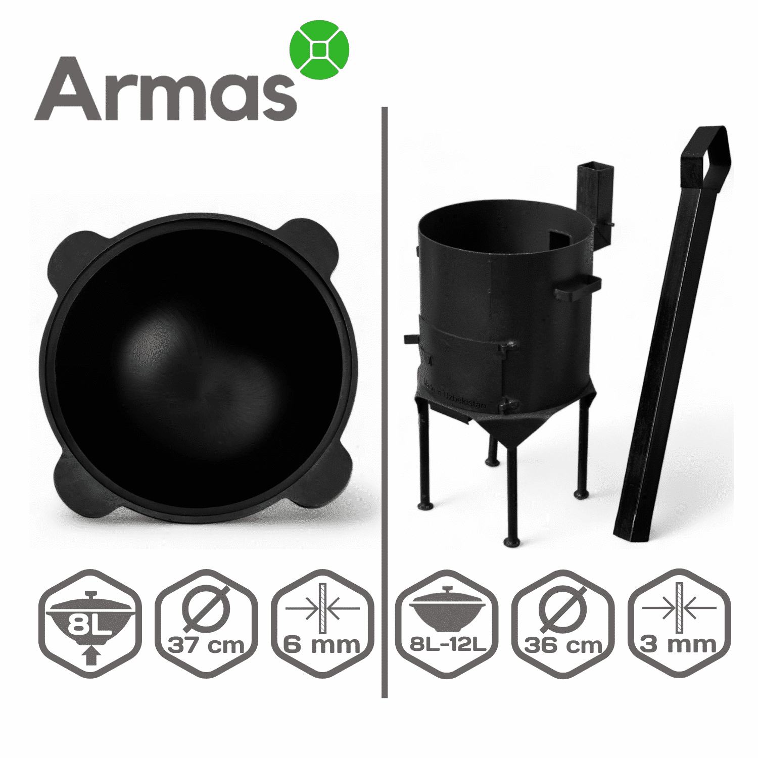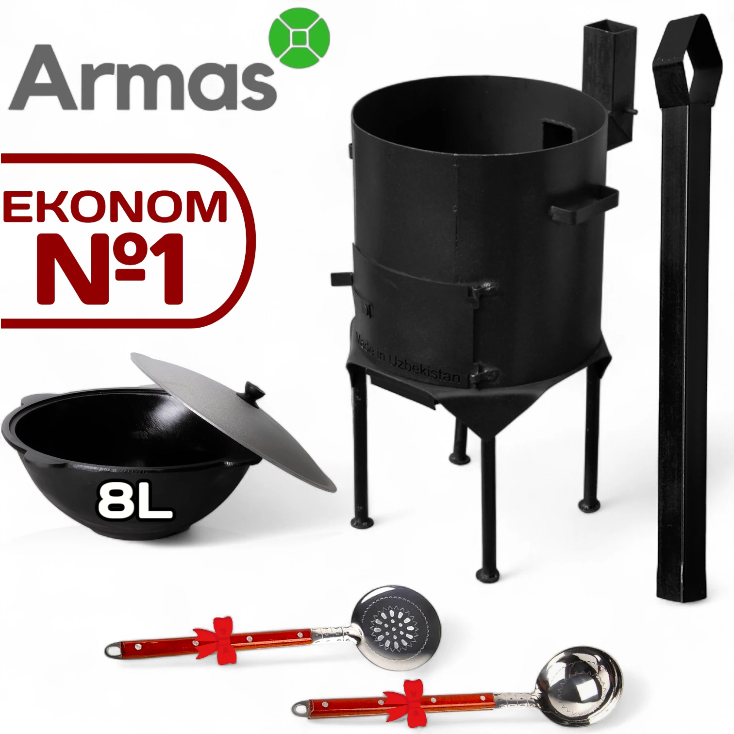 SET ECONOM №1 (Stove for 8-10L cauldron with chimney + Uzbek cauldron 8L + skimmer 40cm + soup ladle 40cm)