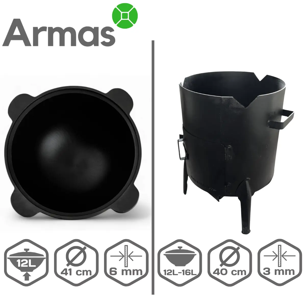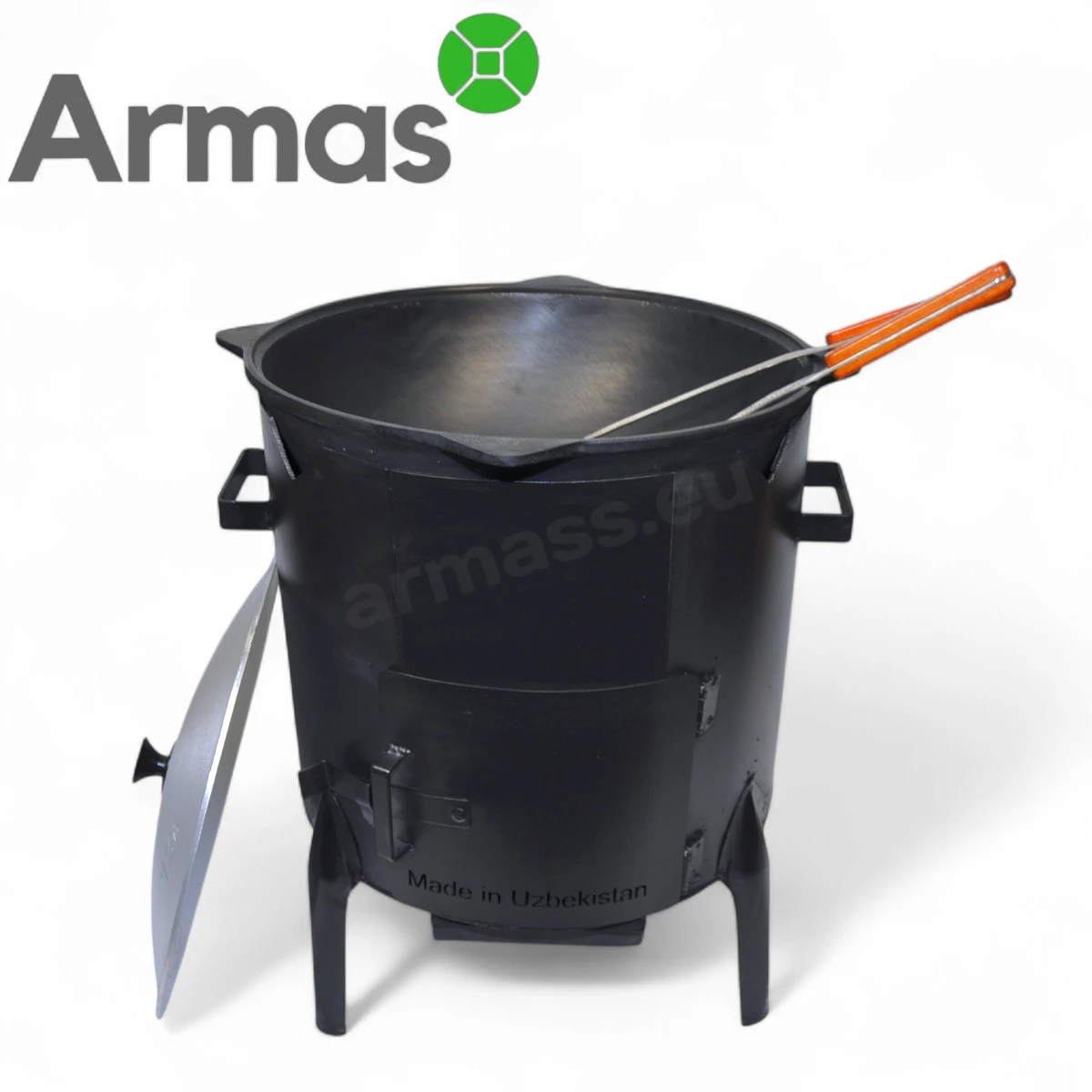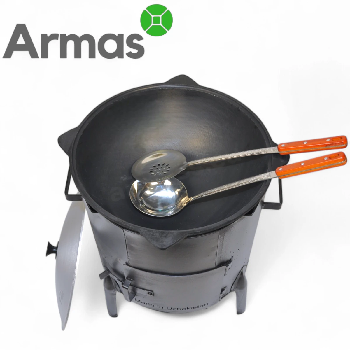 Set STANDARD No. 13 – Stove for 12–16L Kazan + 12L Uzbek Kazan + 46 cm pilaf spoon + 46 cm soup ladle