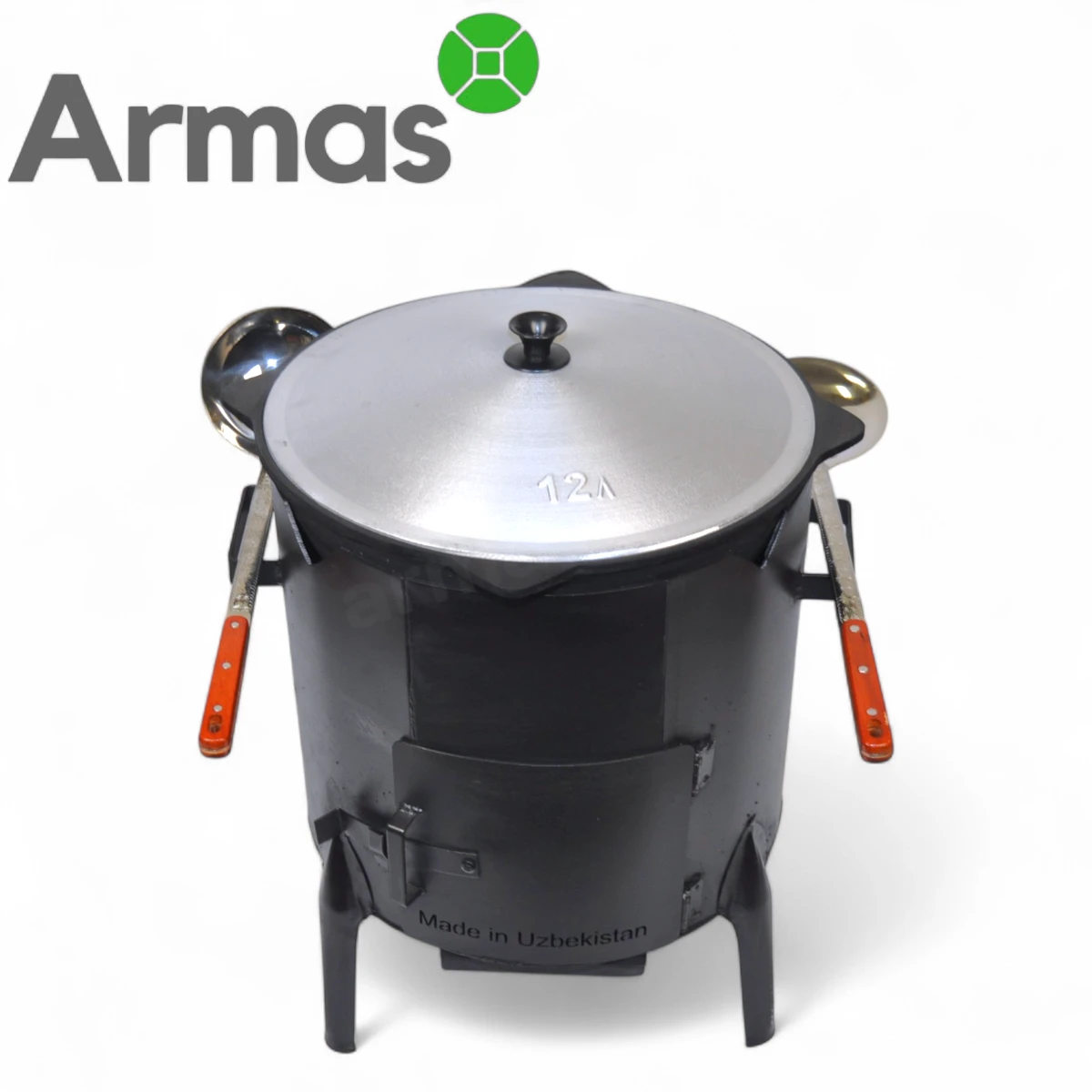 (Stove for 12–16L Kazan + 12L Uzbek Kazan + 46 cm pilaf spoon + 46 cm soup ladle)