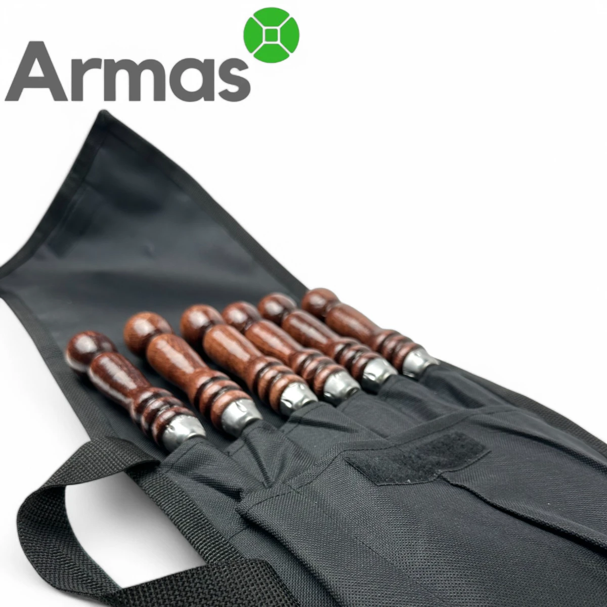 Convenient and resistant skewer bag in black color for safe storage and transport of skewers and other grilling accessories