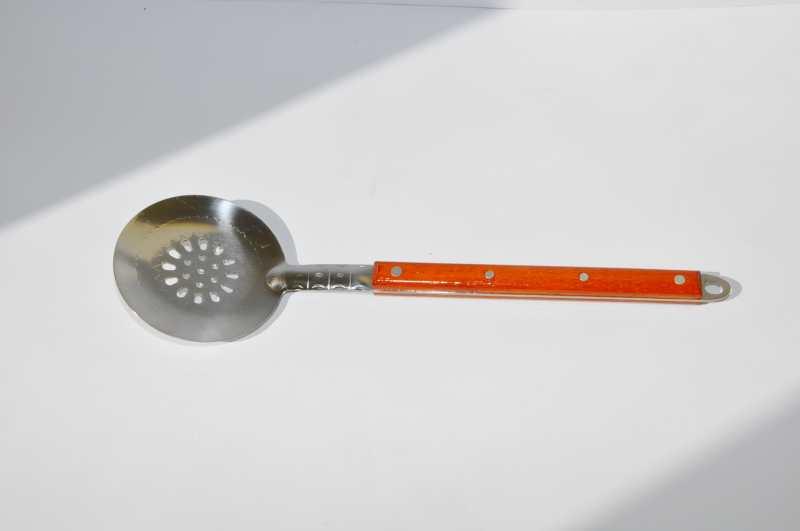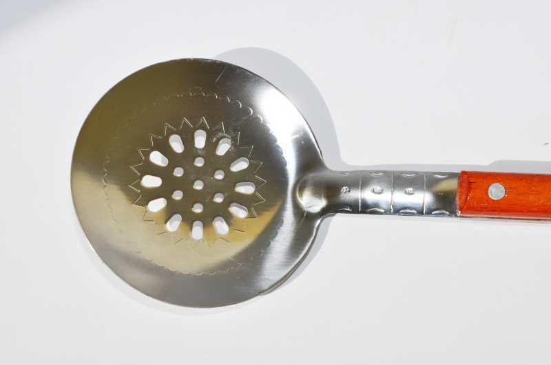 Slotted spoon with holes made of stainless steel with a wooden handle 40cm
