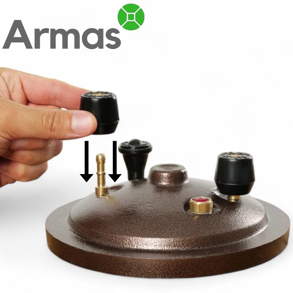 The original valve is designed for use with afghan kazans from 5 to 30 litres. It ensures safety by releasing excess pressure created during cooking, effectively venting the steam.