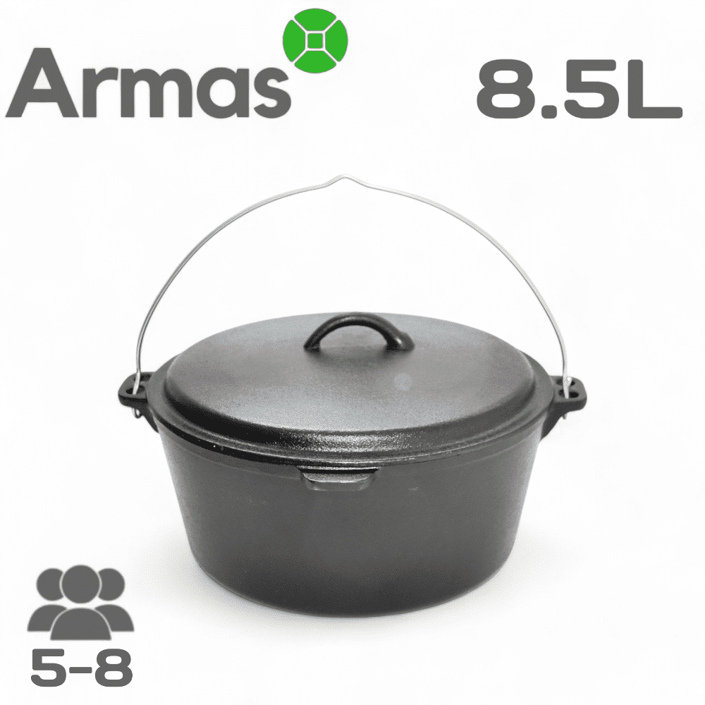Kempinga komplekts Nr.2 – čuguna katls ar statīvu un piederumiem 8.5L
