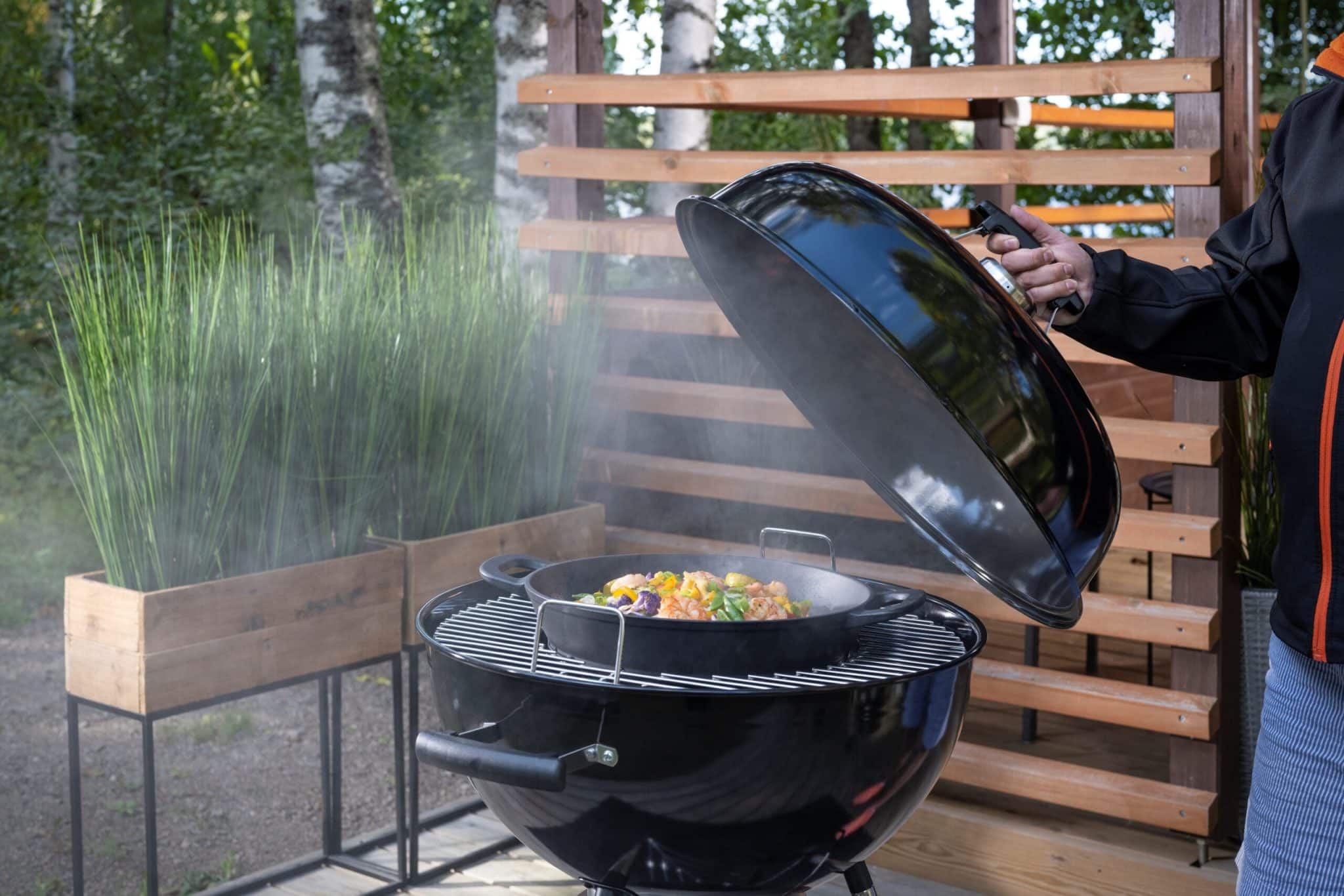 Piknika panna-disks 41 cm ar vāku, kājām un koka lāpstiņu