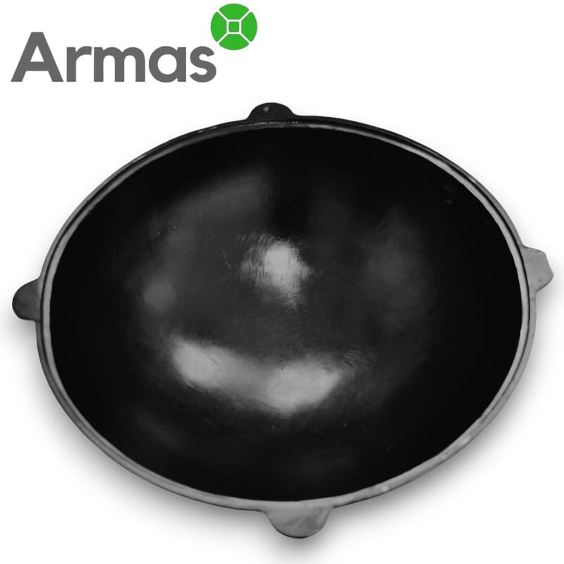 Slīpēšana. Iekšpusē kazans noslīpēts, iekšējā virsma gluda. Kazana ārpuse ir raupja, jo uz tās ir blīvs sodrēju slāņis, kas veidojas ražošanas eļļas sastingšanas rezultātā un ilgstoši atrodoties virs gāzes degļa. Sodrēji nekrāso, jūs nesmērējaties, tā ir tā saucamā pretkorozijas metāla apstrāde.