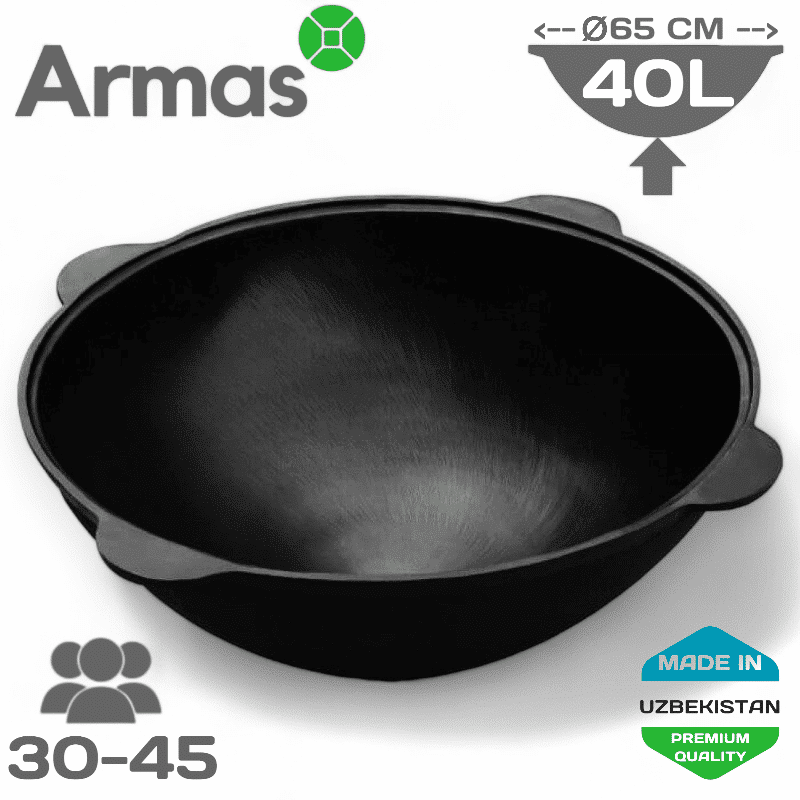 Lai pagatavotu lielisku ēdienu uz lielu 30-45 cilvēku kompāniju, ideāli piemērots 40 litru čuguna kazans.