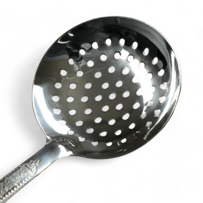 Lielisks virtuves rīks pastas, plovu, pelmeņu, dārzeņu un citu ēdienu gatavošanai, pateicoties unikālajiem caurumiem, kas ļauj viegli notecēt liekajam ūdenim vai eļļai.