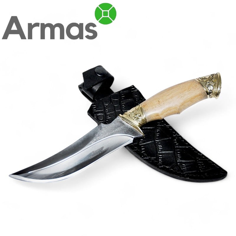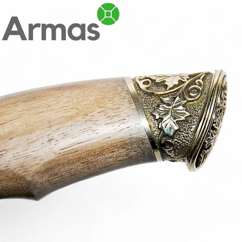 - Materiāls: H12MF tērauds, riekstkoks, misiņš;