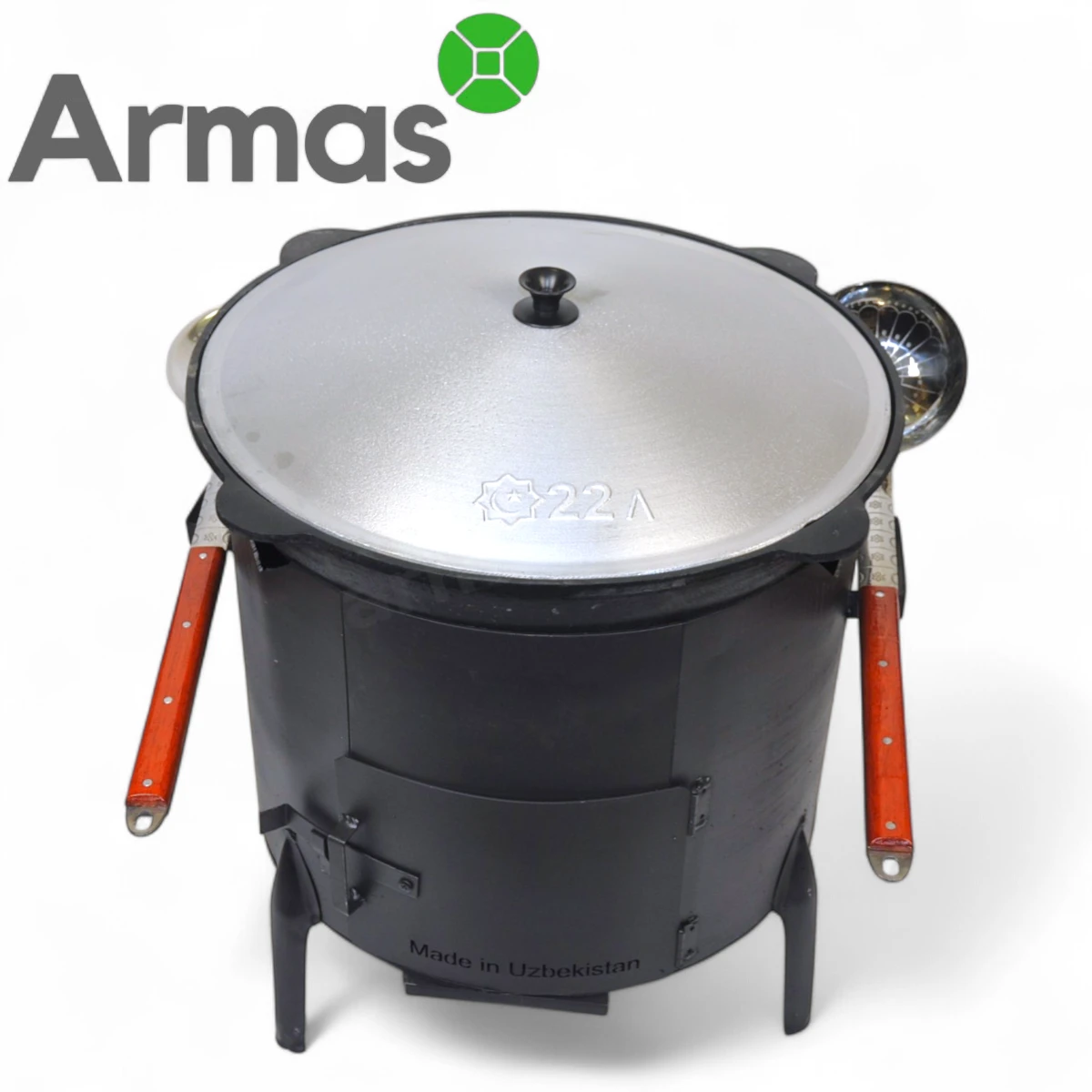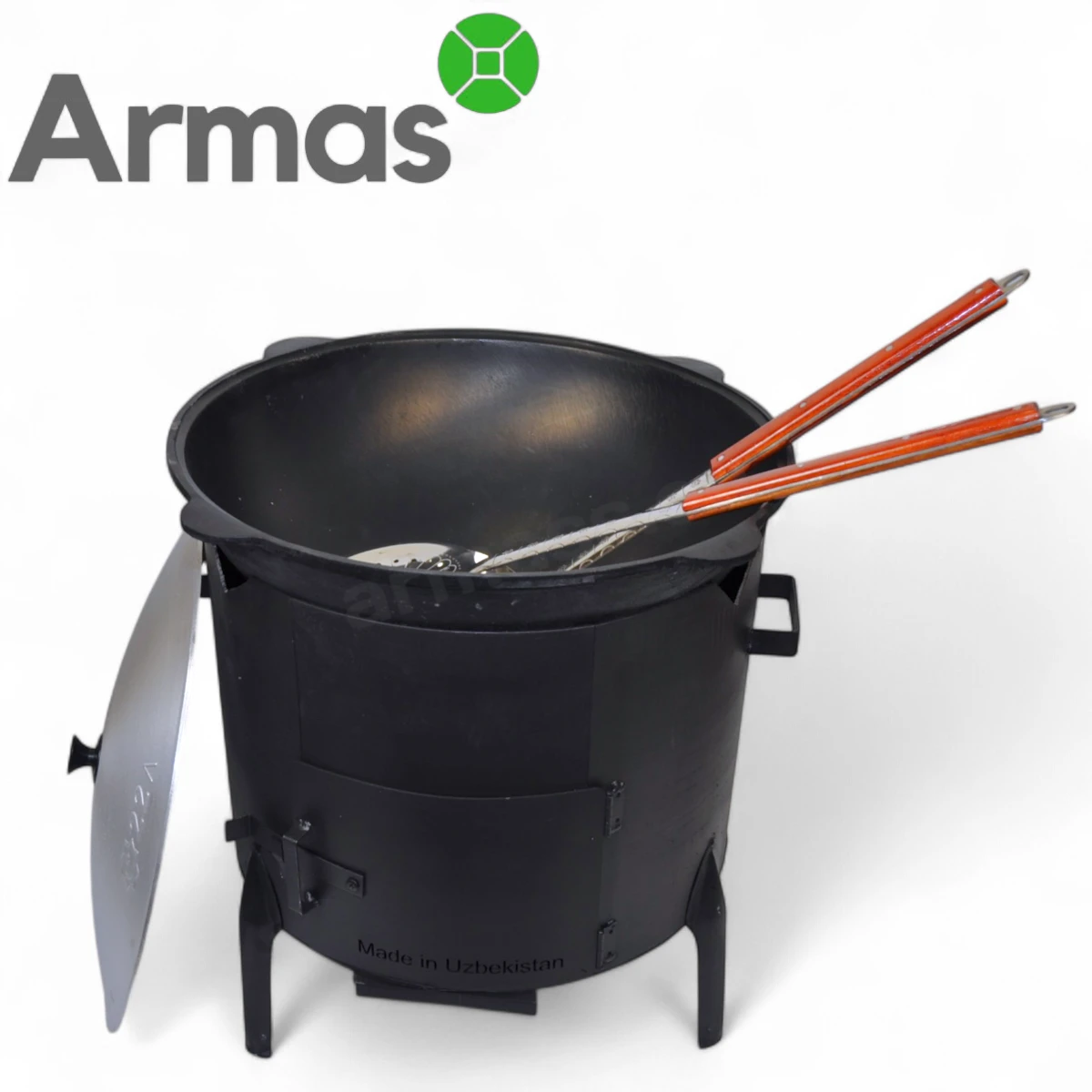 (Krāsns 16-22L kazanam + uzbeku kazans 22L + plova karote 64cm + zupas kauss 64cm)