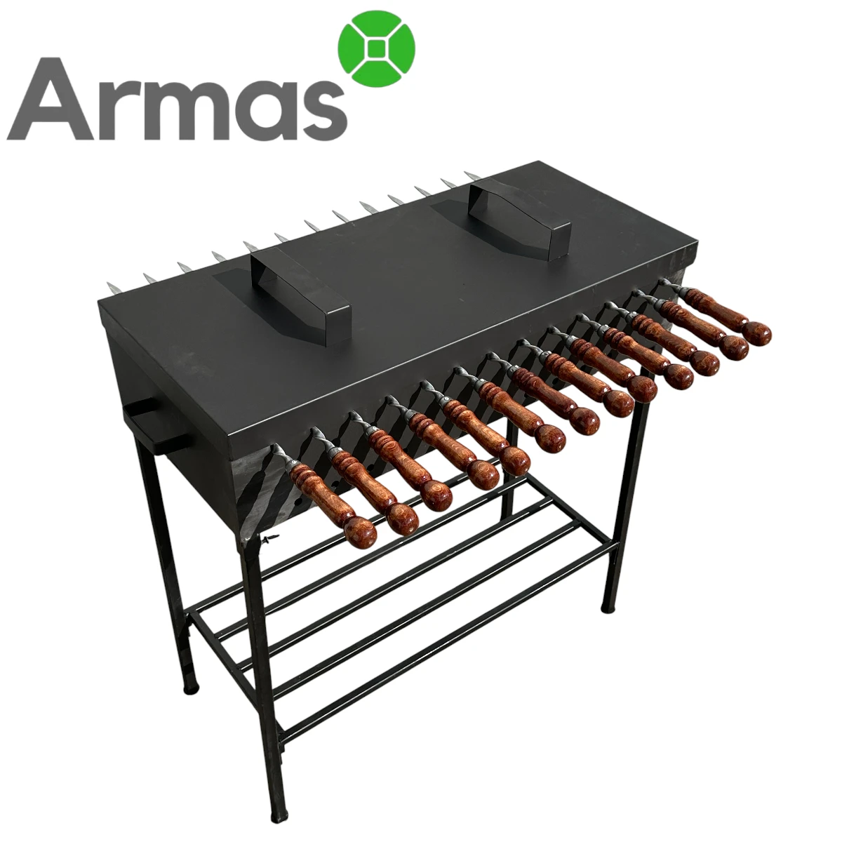 Izturīgs mangals grils ar vāku, izgatavots no 4 mm bieza tērauda.
