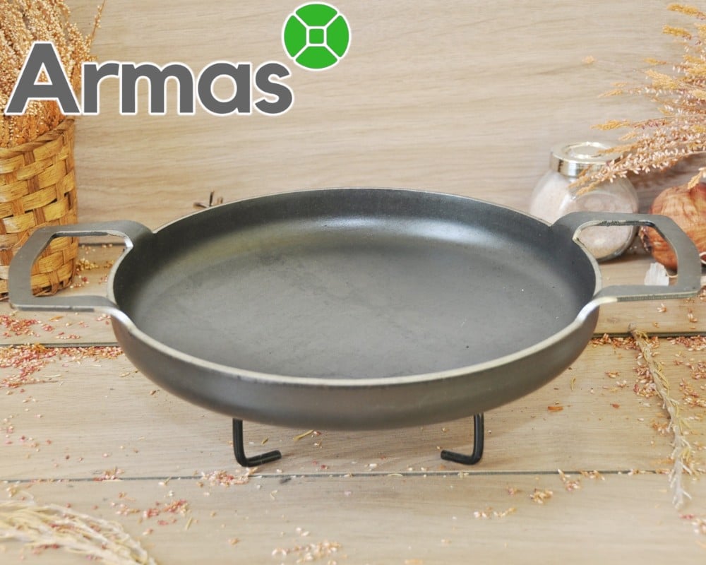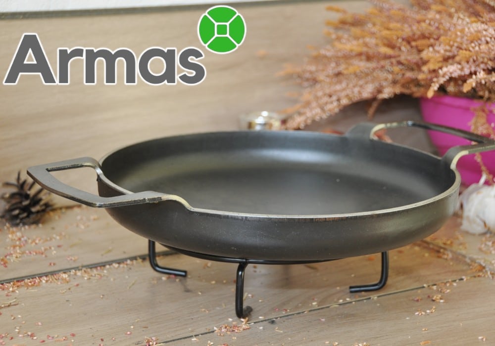 Piknika panna-disks 41 cm ar kājām un koka lāpstiņu