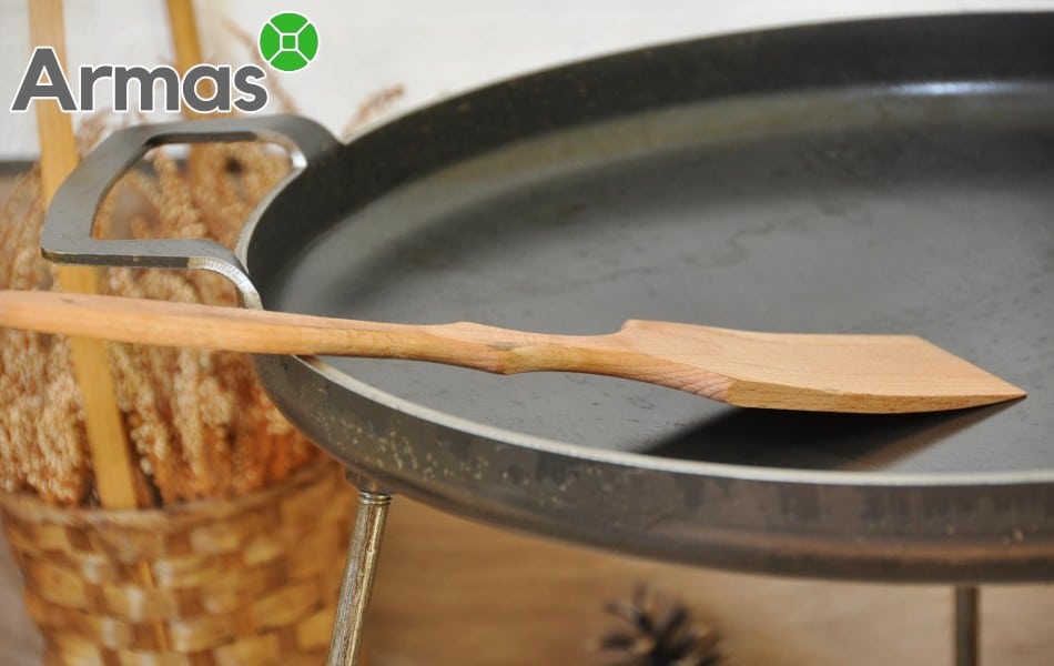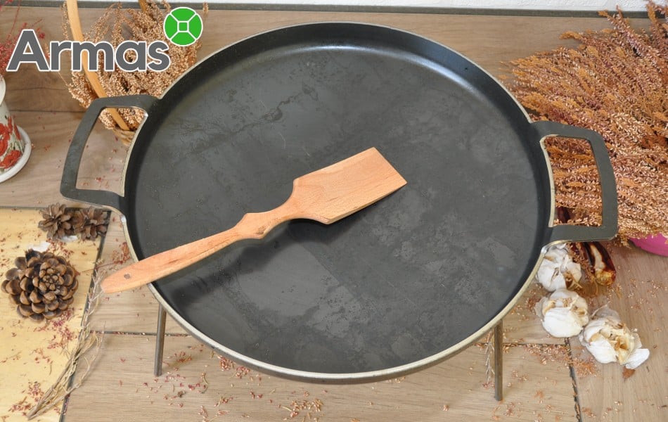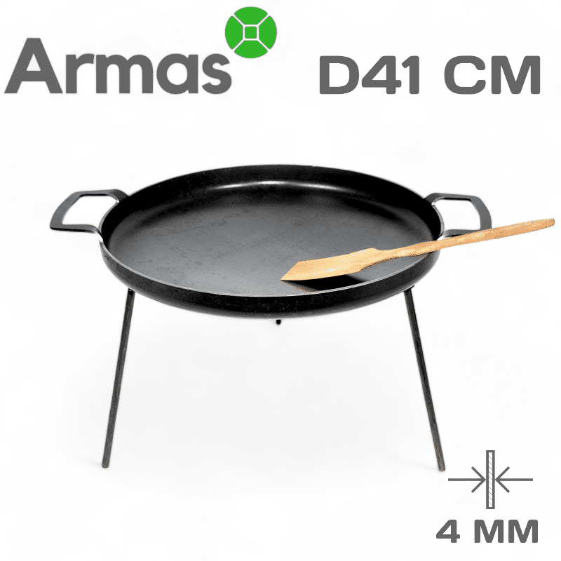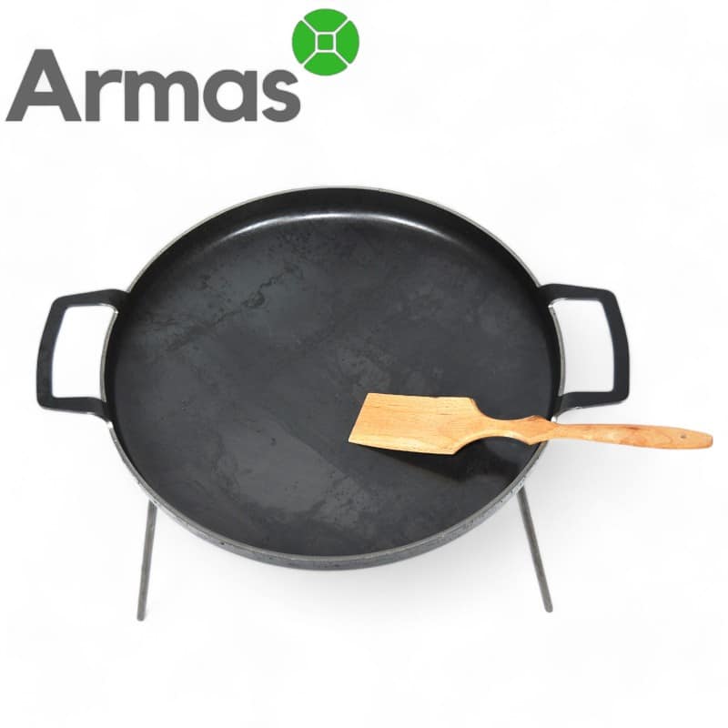 Piknika panna-disks 41 cm ar kājām un koka lāpstiņu