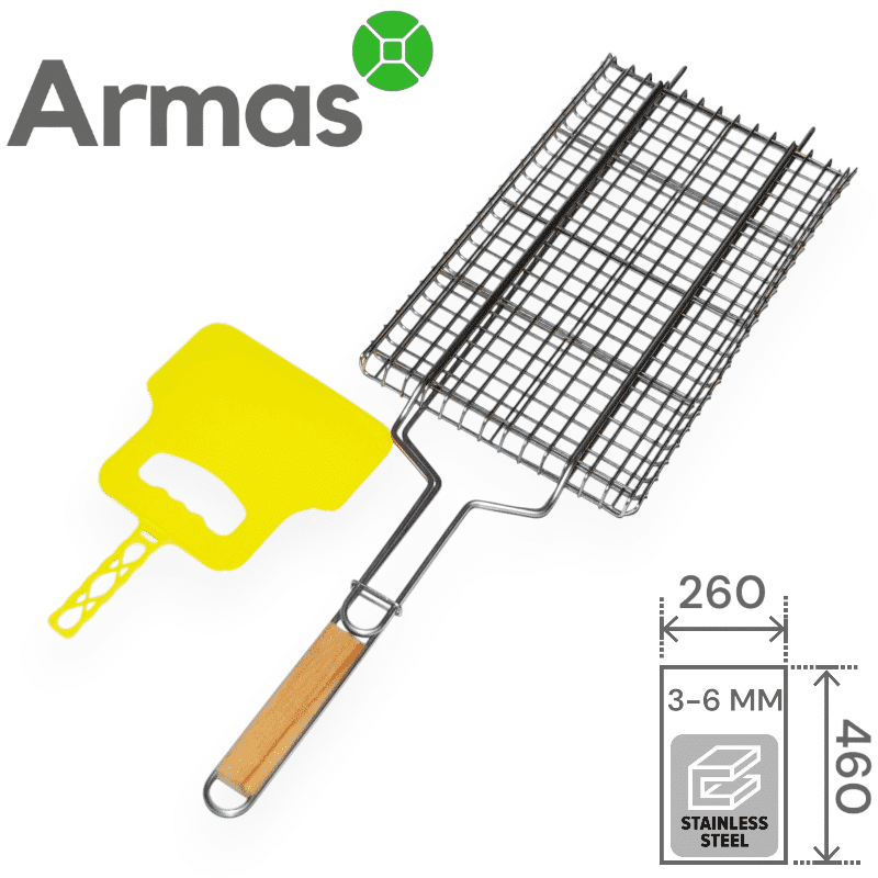 Profesionāla grila reste no nerūsējošā tērauda ar izmēriem 260×460 cm ir paredzēta lietošanai uz grila vai mangala. Tā ir aprīkota ar skavu un regulējamu augstumu, kas atvieglo grilēšanu. Komplektā ietilpst arī grila vēdeklis.