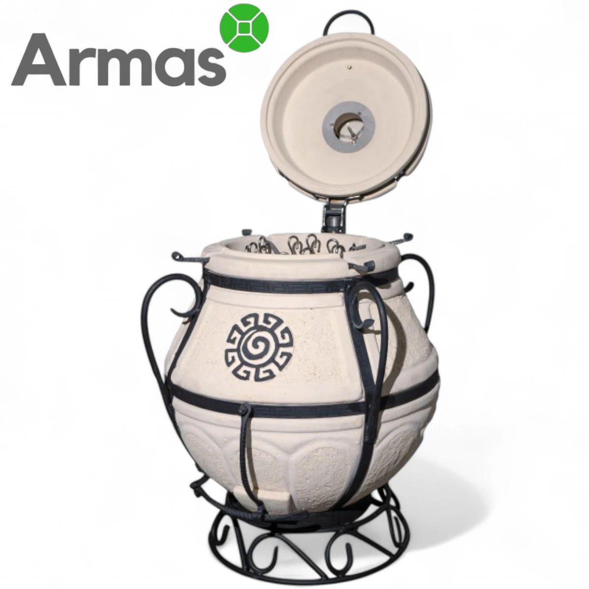 Tandirs ALADDIN MINI ar grozāmu-atvāžamu vāku 2025 NEW 75 L tilpumu ir sena keramikas malkas krāsns, kas piedāvā daudzas priekšrocības. Tai piemīt augsta efektivitāte un unikālas īpašības.