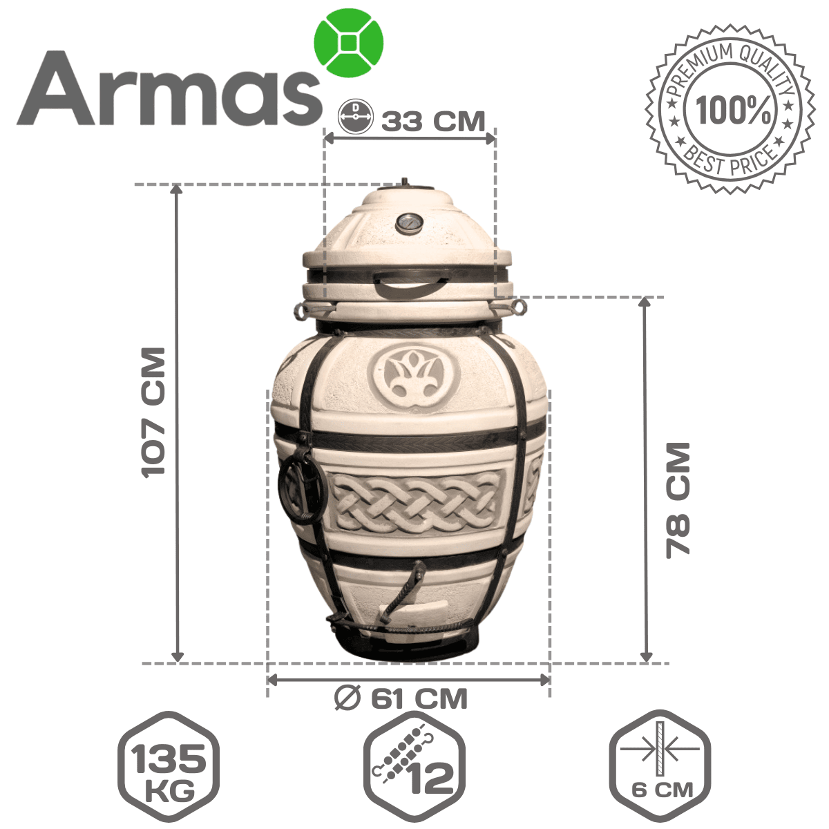 ATAMAN NEW 2025 pieder lielu tandiru kategorijai, ideāli piemērots lielām kompānijām. Šis tandirs ir stacionārāks lielā svara dēļ, tāpēc ir ideāli piemērots mājas lietošanai. Pateicoties lielajam krāsns apjomam, tā viegli pabaros vienā reizē 14-16 cilvēkus, kas padara to par ideālu izvēli ģimenes pasēdēšanai un draudzīgām tikšanās reizēm.