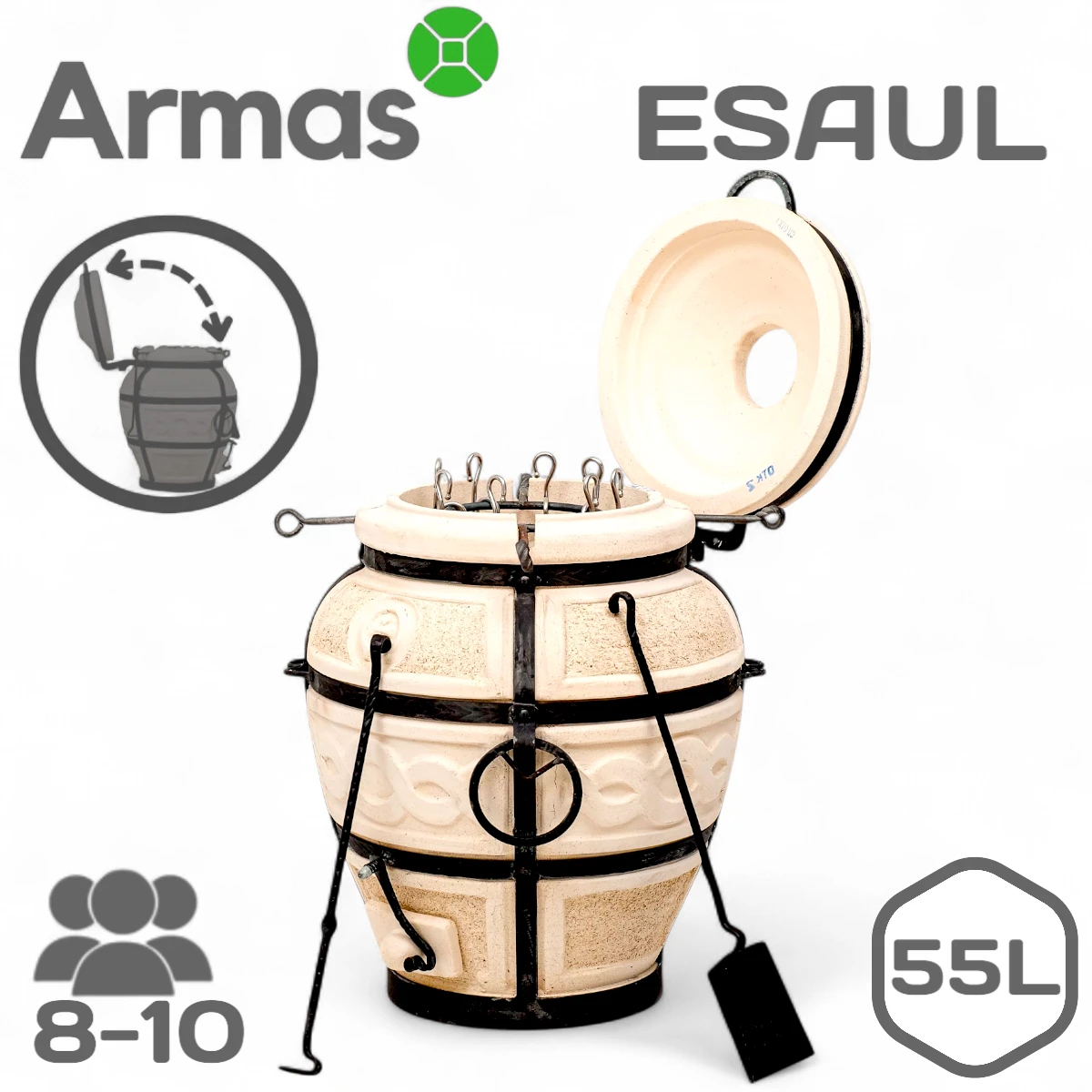 Tandirs ESAUL ar atvāžamu vāku 55 L tilpumu ir sena keramikas malkas krāsns, kas piedāvā daudzas priekšrocības. Tai piemīt augsta efektivitāte un unikālas īpašības.