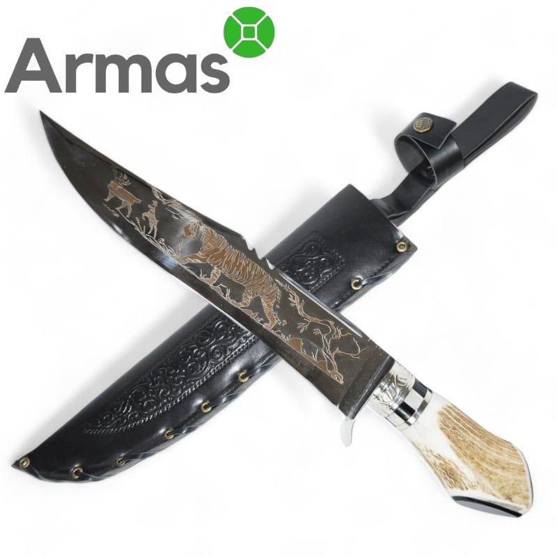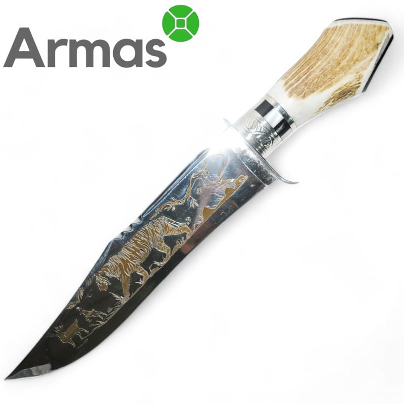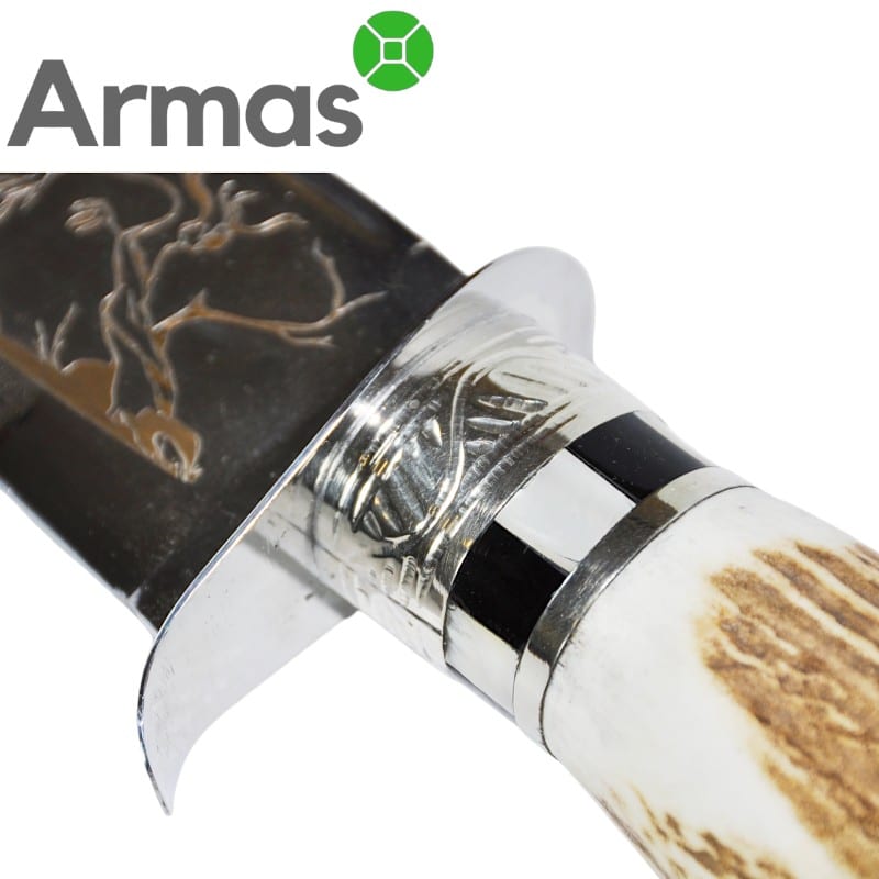 - Materiāls: nerūsējošais tērauds, briežu rags;
