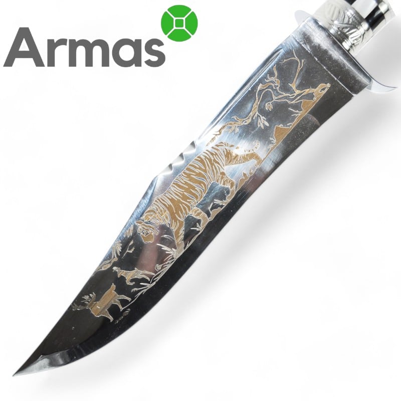 Nerūsējošā tērauda uzbeku nazis ar gravējumu ir lielisks funkcionalitātes un mākslas apvienojums. Šis nazis ne tikai kalpo kā lielisks instruments, bet arī būs unikāla dāvana, pateicoties savai izsmalcinātajai gravējumam. Praktiska un stilīga izvēle kvalitatīvu izstrādājumu cienītājiem.