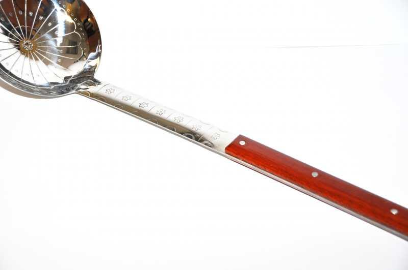 Putu karote ar caurumiem no nerūsējoša tērauda ar koka kātu 40cm