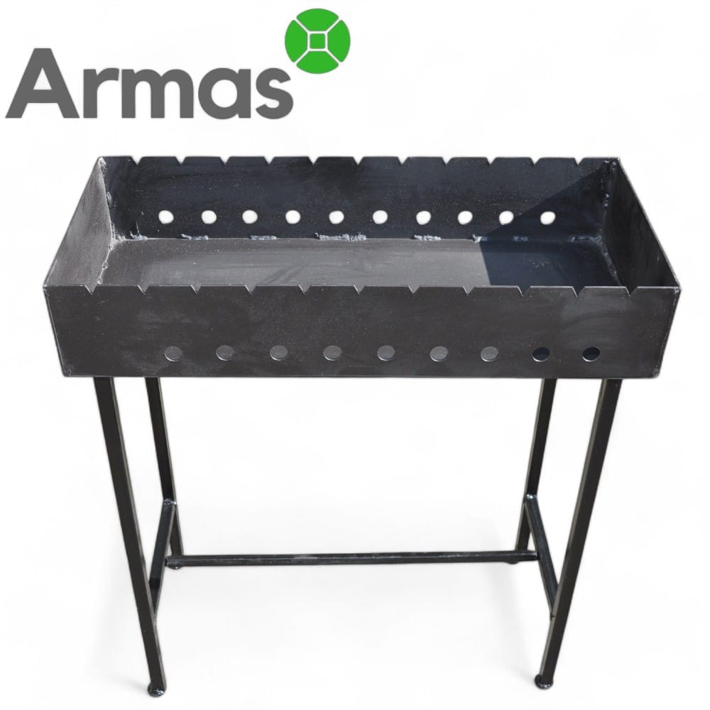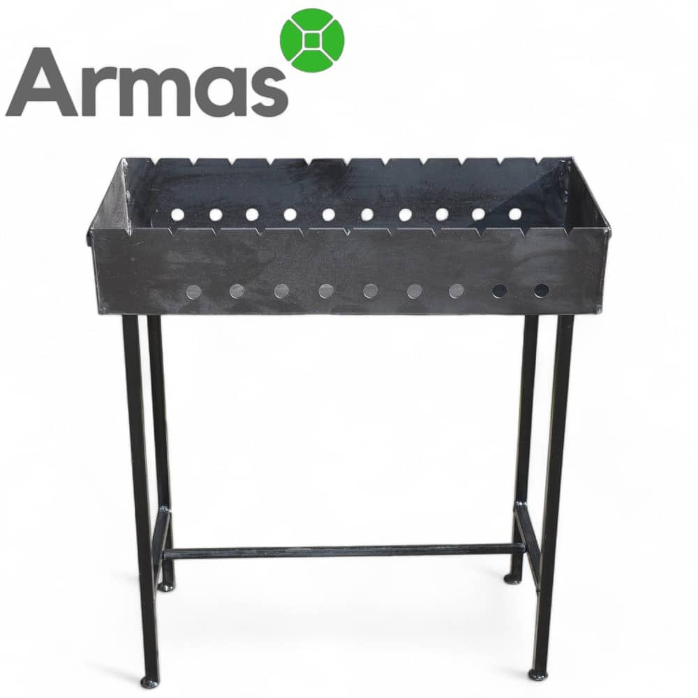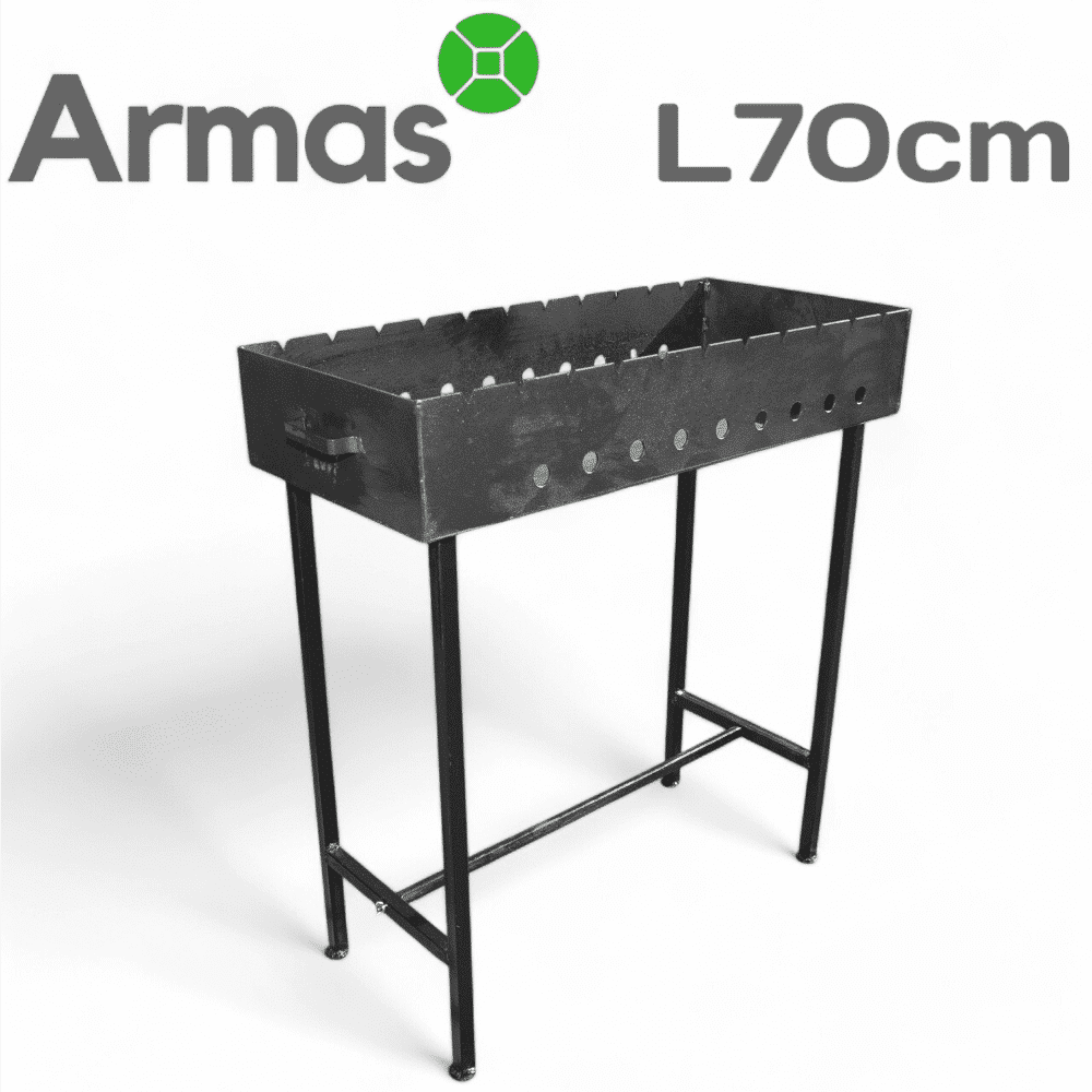 - Длина мангала: 700 мм — подходит для 6 шампуров одновременно, с вырезами для легкого и равномерного приготовления.