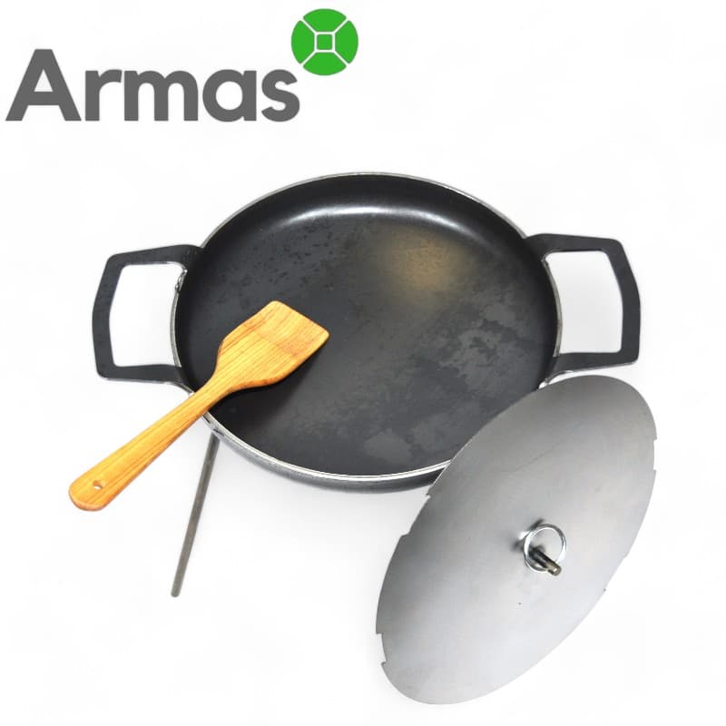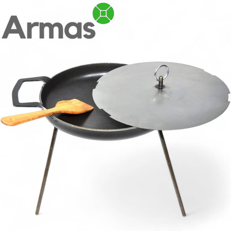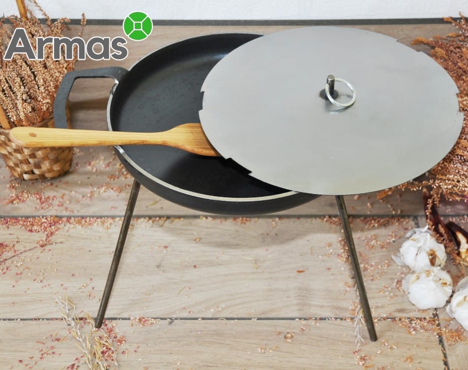 Сковорода-диск для пикника 30 см с крышкой, ножками и деревянной лопаткой
