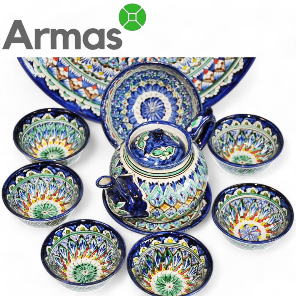 Удивите своих близких уникальным сувенирным классическим узбекским чайным сервизом, выполненным вручную мастерами с выдающимся качеством.