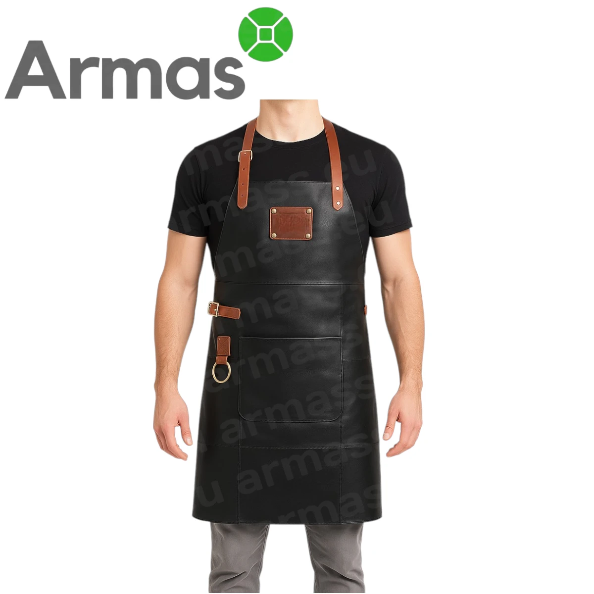 Стильный и прочный кожаный фартук для гриля/барбекю из 100% натуральной кожи буйвола (80×55 см). Оснащен регулируемыми кожаными ремнями и вместительным передним карманом. Идеально подходит для барбекю, гриля и в качестве практичного подарка.