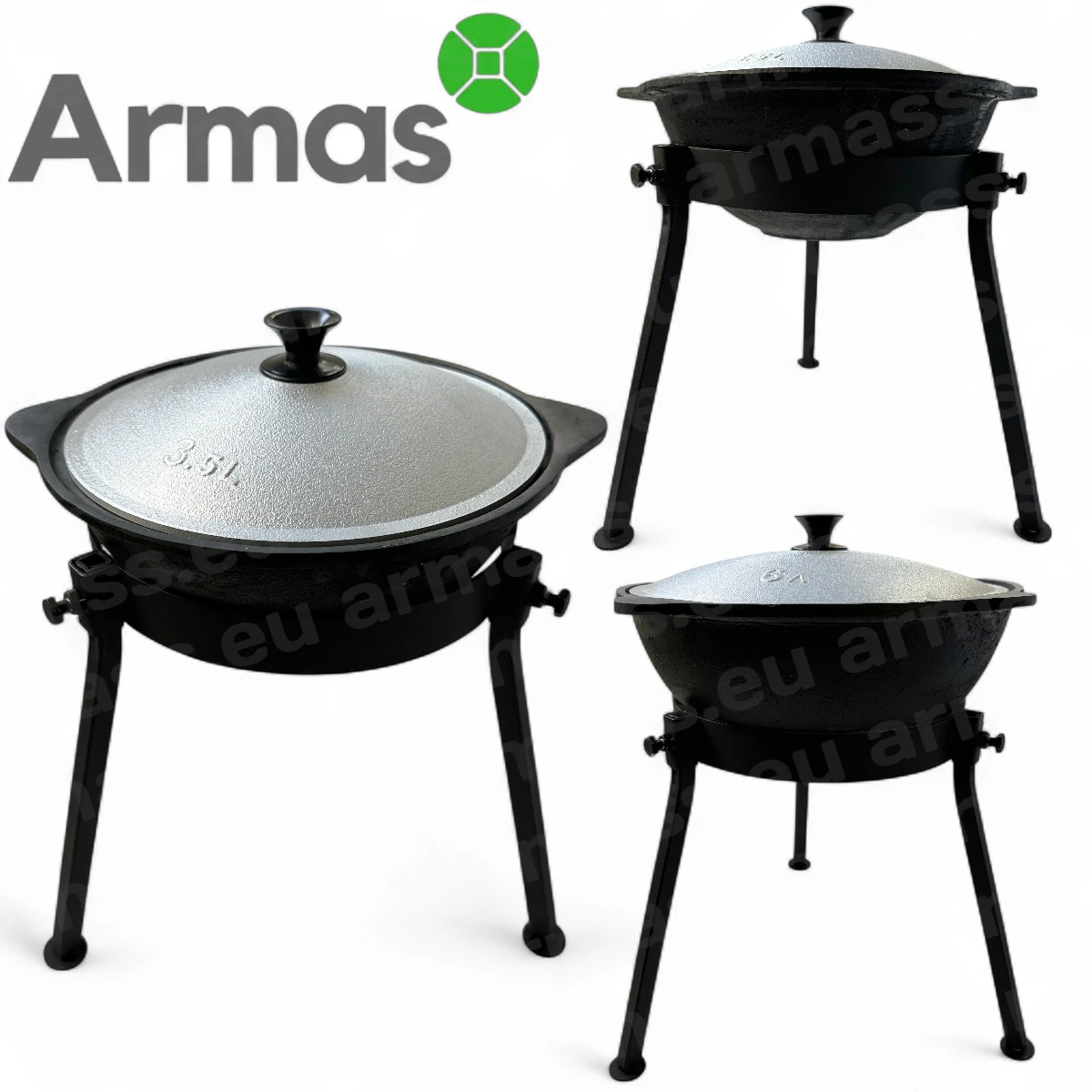 казаны (3,5–6 л), сковороды, кастрюли, котлы, решётки, шампуры |