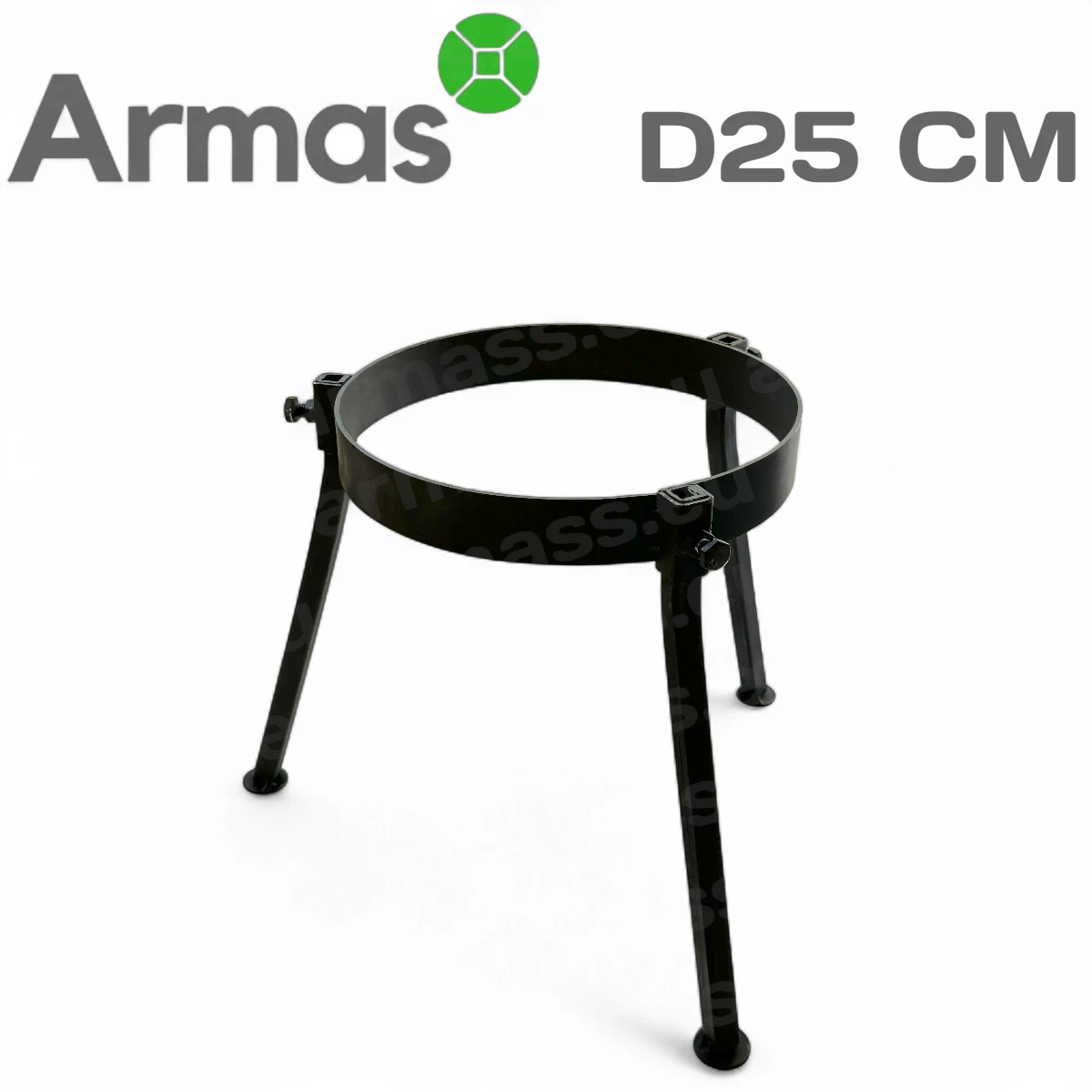 Изготовлен из стали толщиной 3 мм с чёрным покрытием, защищающим от коррозии. Устойчивое кольцо с тремя ножками обеспечивает надёжную опору для чугунных казанов, сковород, решёток и даже шампуров. Подходит для казанов объёмом от 3,5 до 6 литров (обязательно проверьте диаметр посуды).