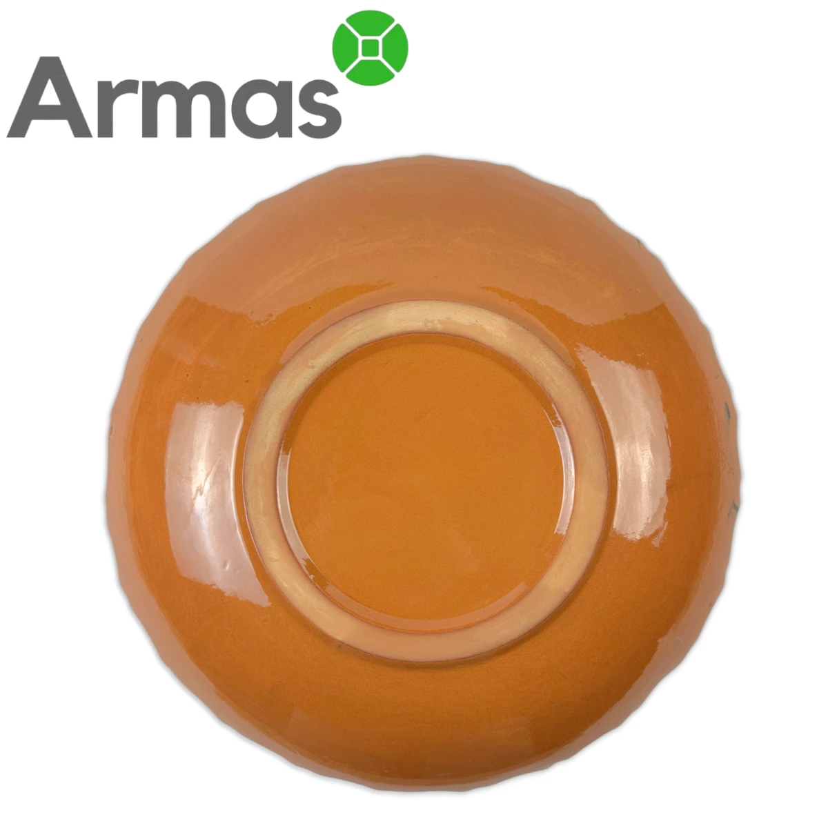 Узбекская керамическая тарелка ручной работы – традиционная ляган для плова с резным краем и ярким орнаментом. Диаметр 40 см.